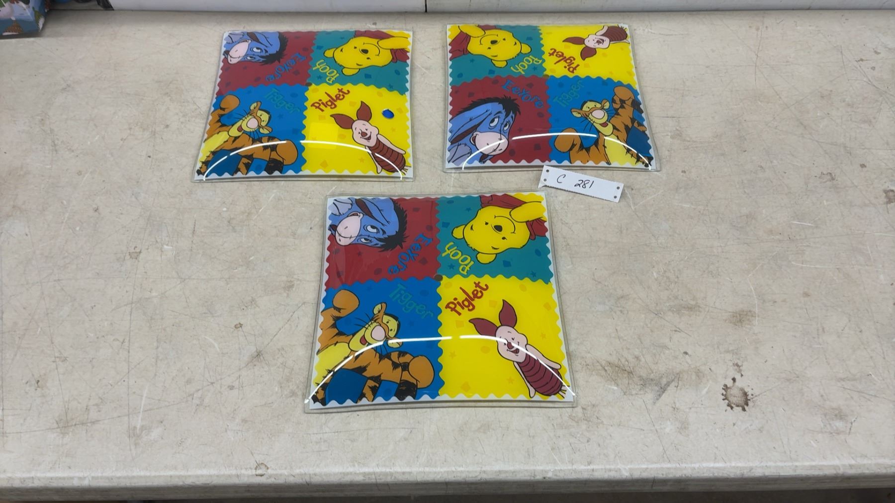 Lot 281 Winnie the Pooh Glass Ceiling Light Shade Set of 3 - Pooh, Piglet, Eeyore, Tigger