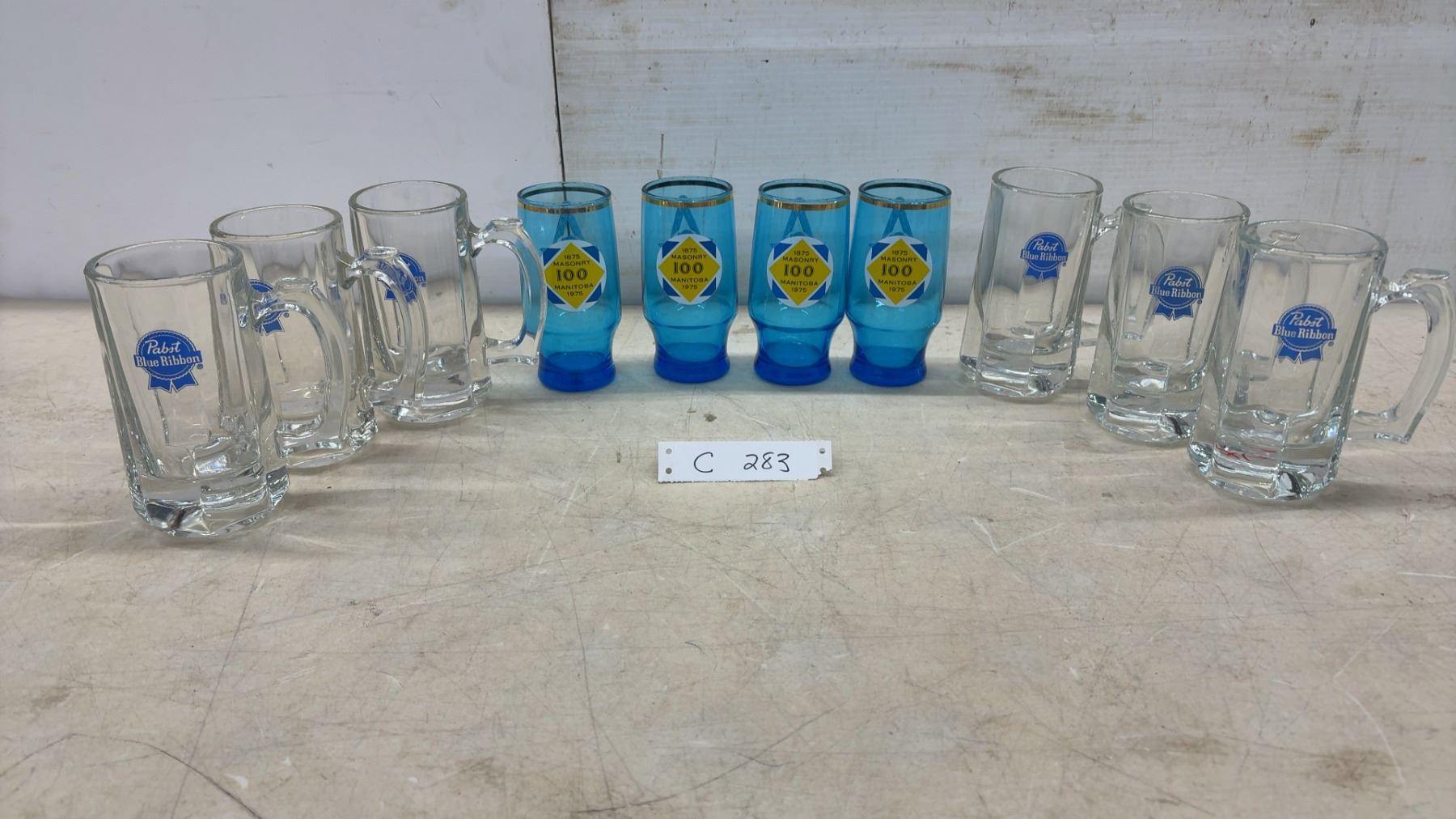 Lot 283 6 Pabst Blue Ribbon Glass Beer Mugs & 4 Masonic Grand Lodge Manitoba 1975 Glasses (4)