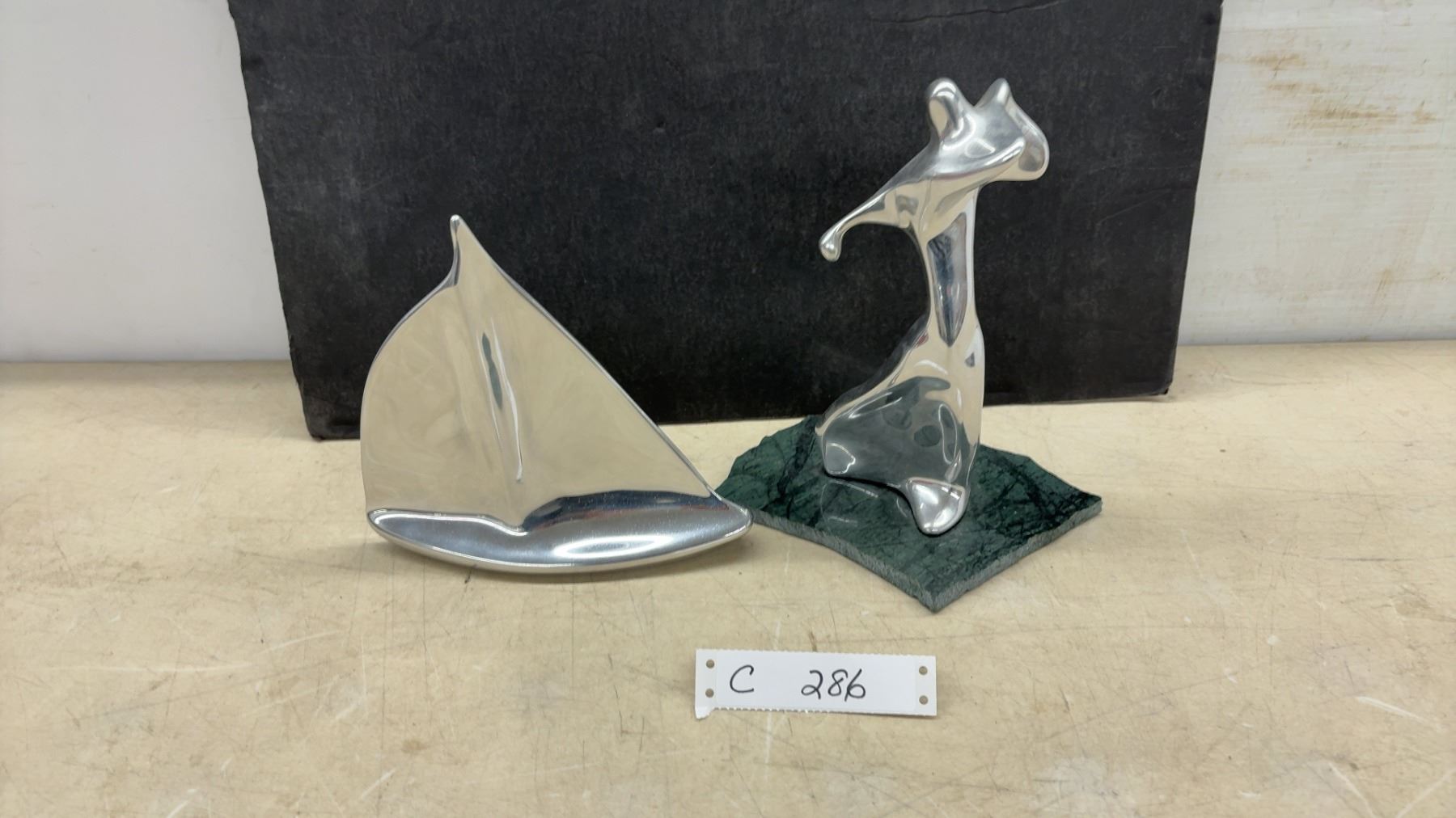 Lot 286 Hoselton Sculpture Aluminum Figure on Marble Base & Polished Aluminum Sailboat Figurine, Signed.