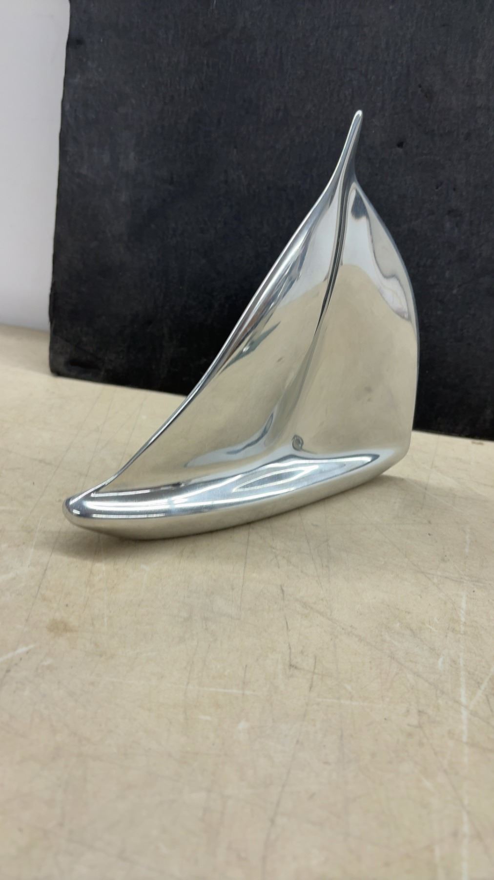 Hoselton Sculpture Aluminum Figure on Marble Base & Polished Aluminum Sailboat Figurine, Signed.
