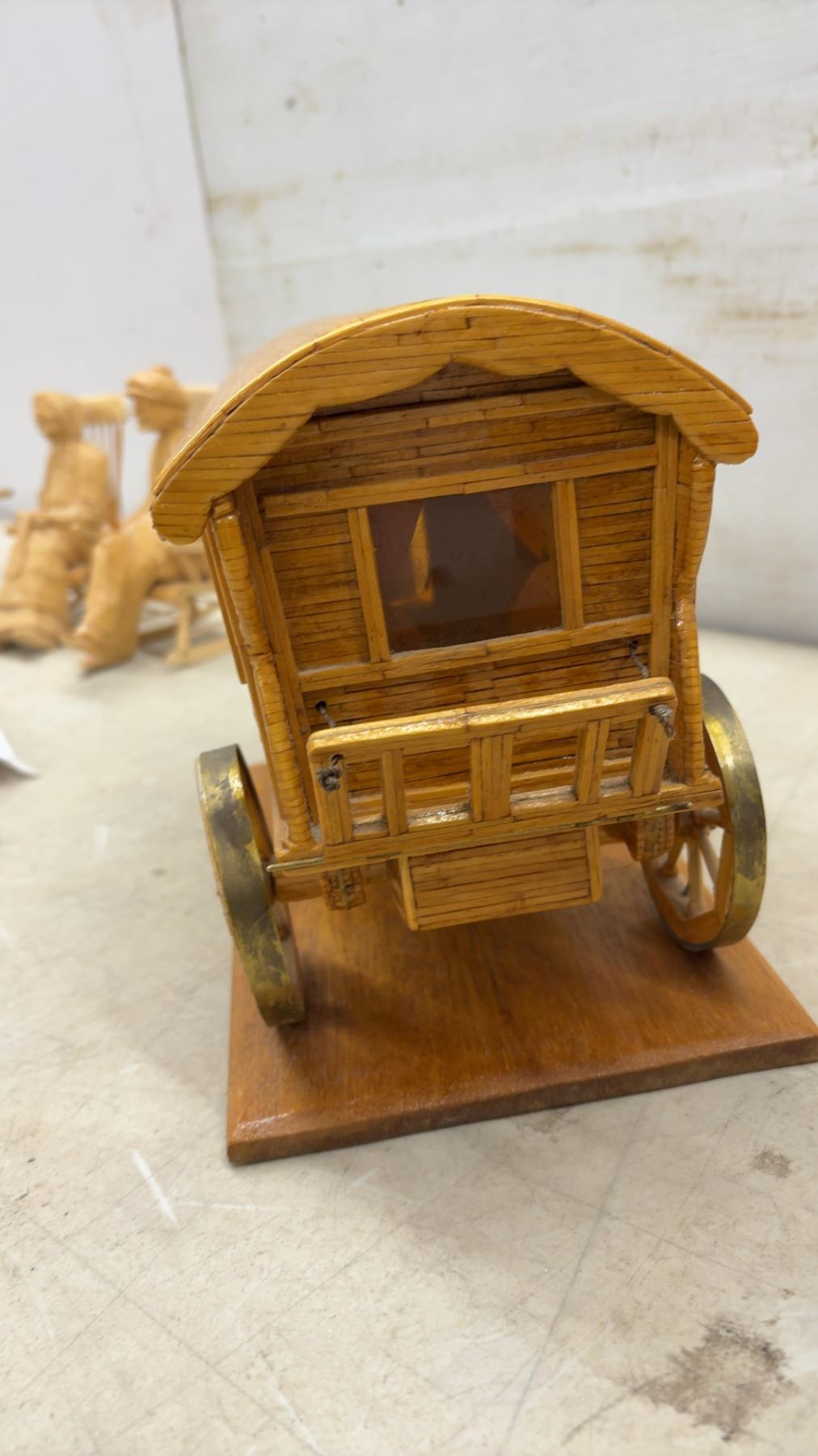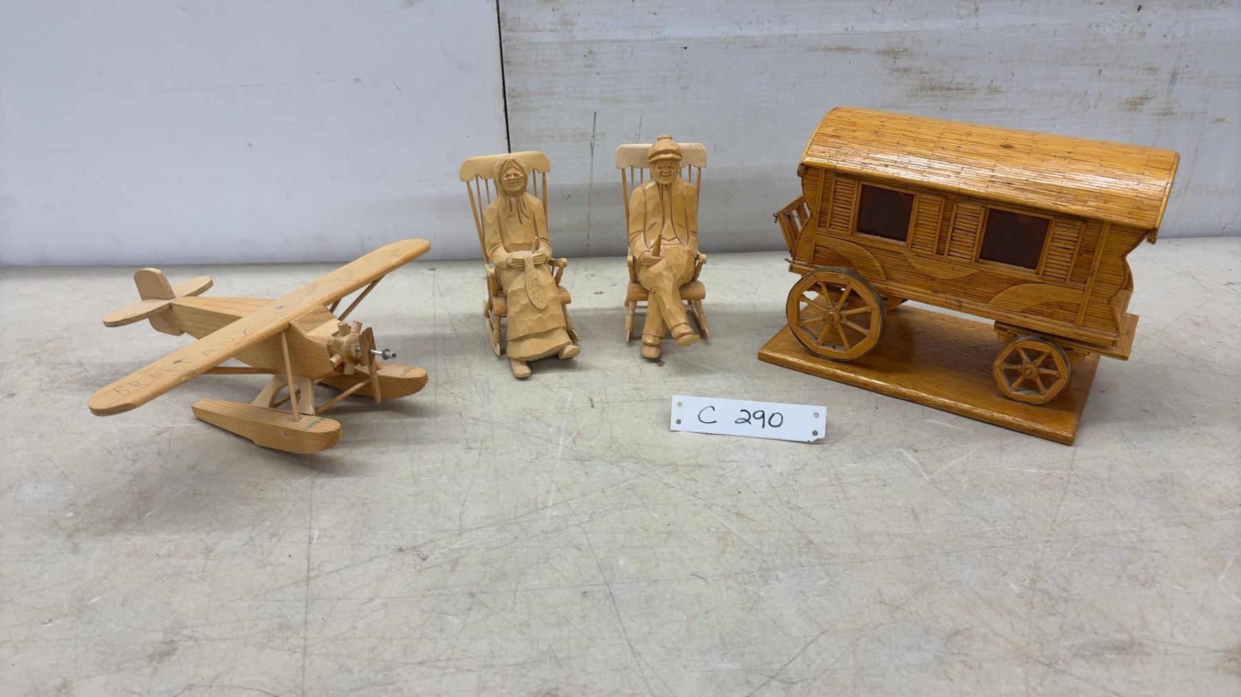 Lot 290 Handcrafted Wooden Models: Biplane, Elderly Couple in Rocking Chairs, and Romany Gypsy Caravan 7
