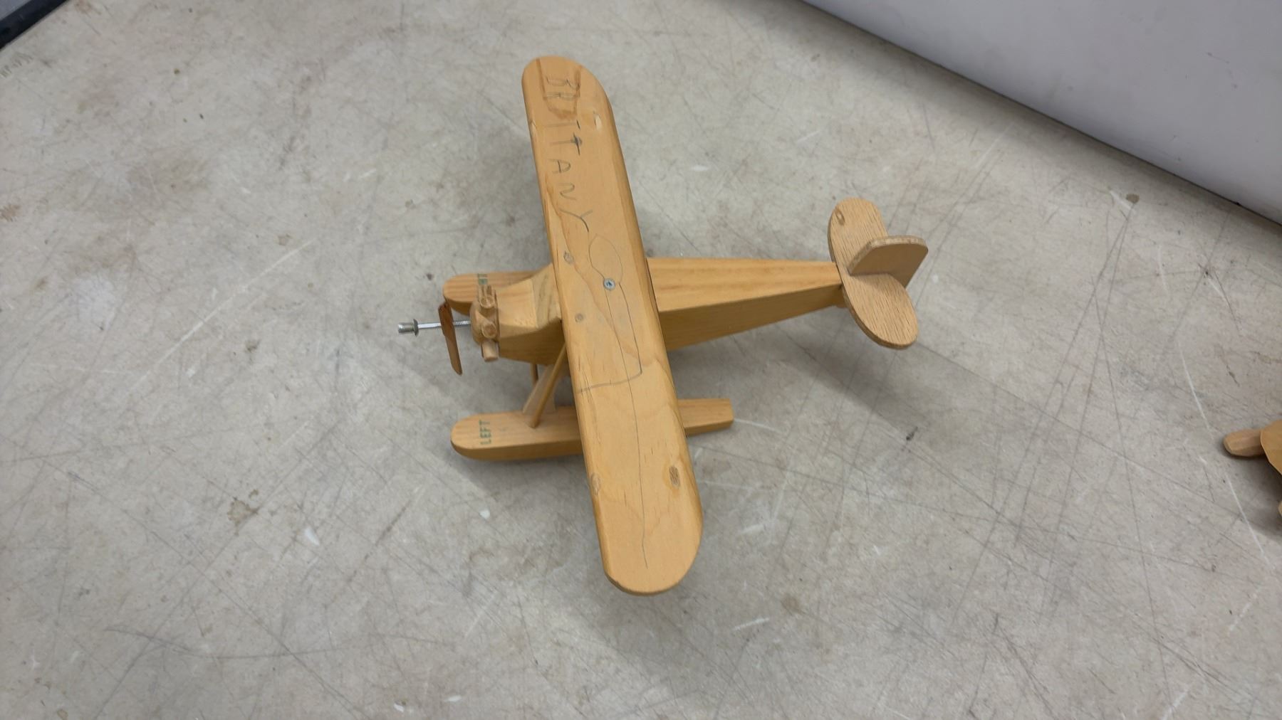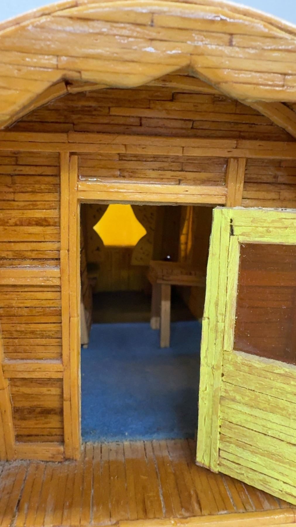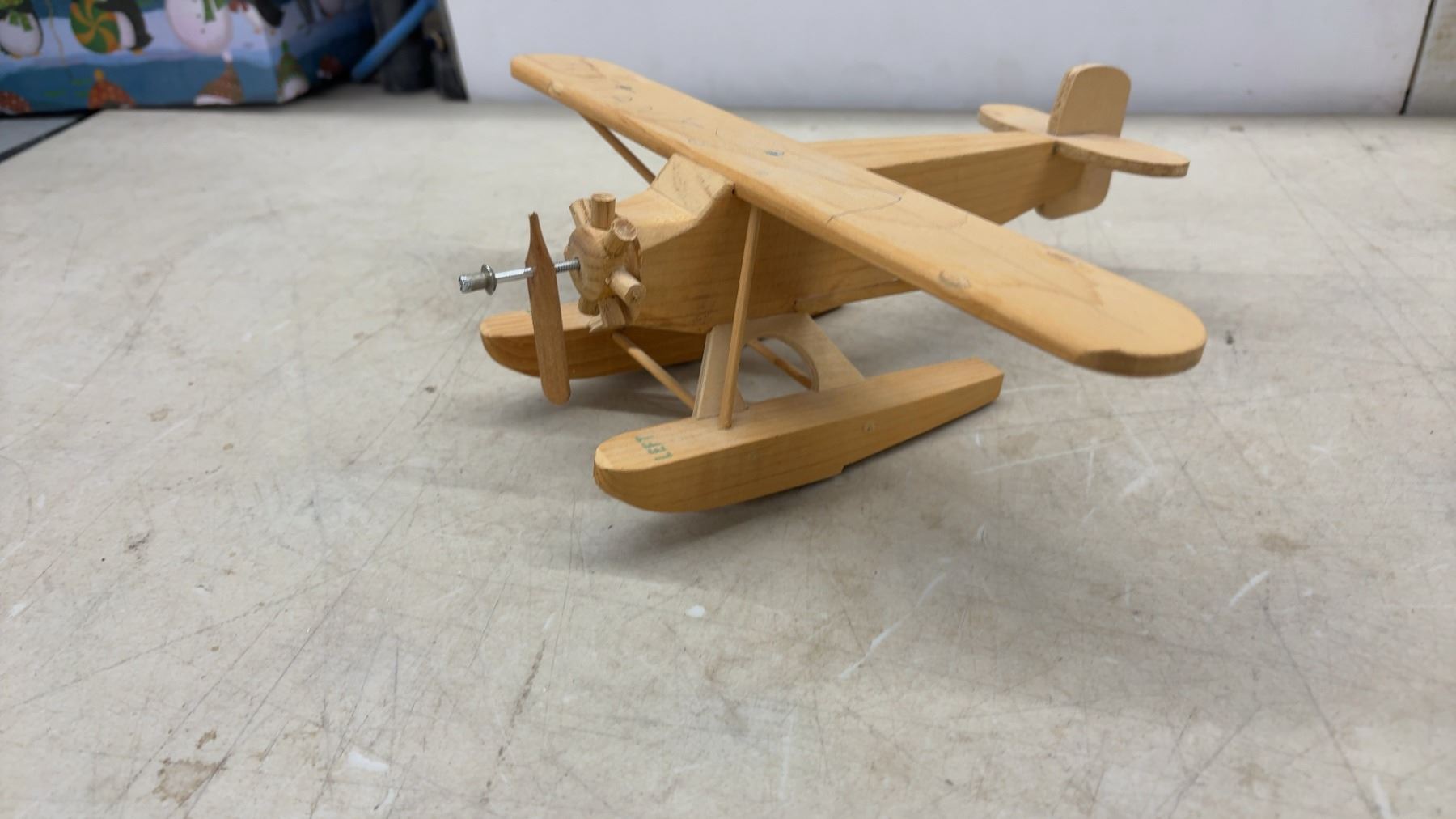Handcrafted Wooden Models: Biplane, Elderly Couple in Rocking Chairs, and Romany Gypsy Caravan 7