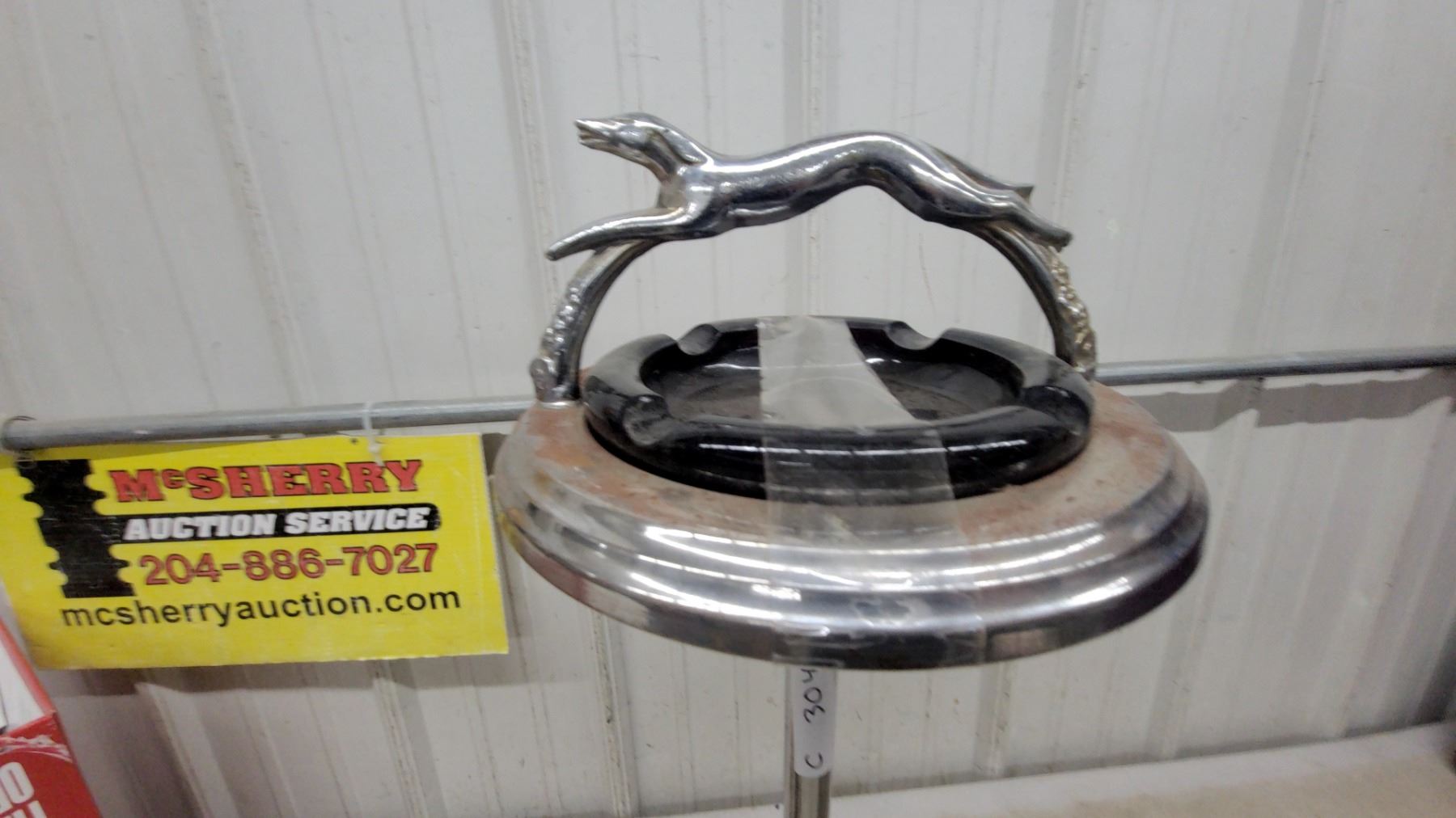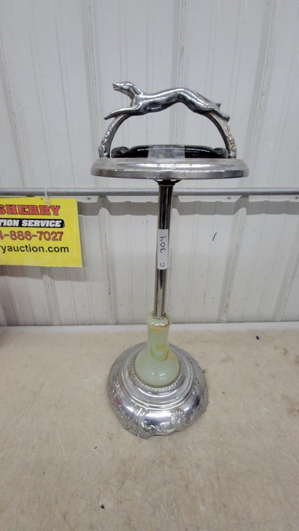 Lot 304 Art Deco Chrome Floor Ashtray Stand with Greyhound Dog Handle & Onyx Accent