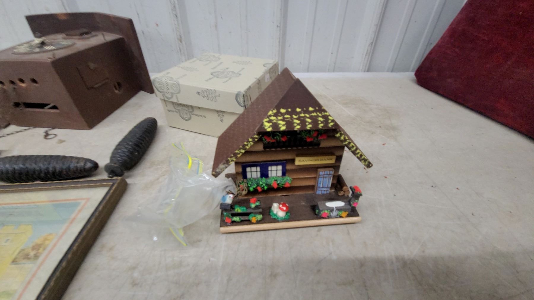 Framed Prints, Cuckoo Clock Parts, Decorative Chalet Bank, Fort Garry Artwork