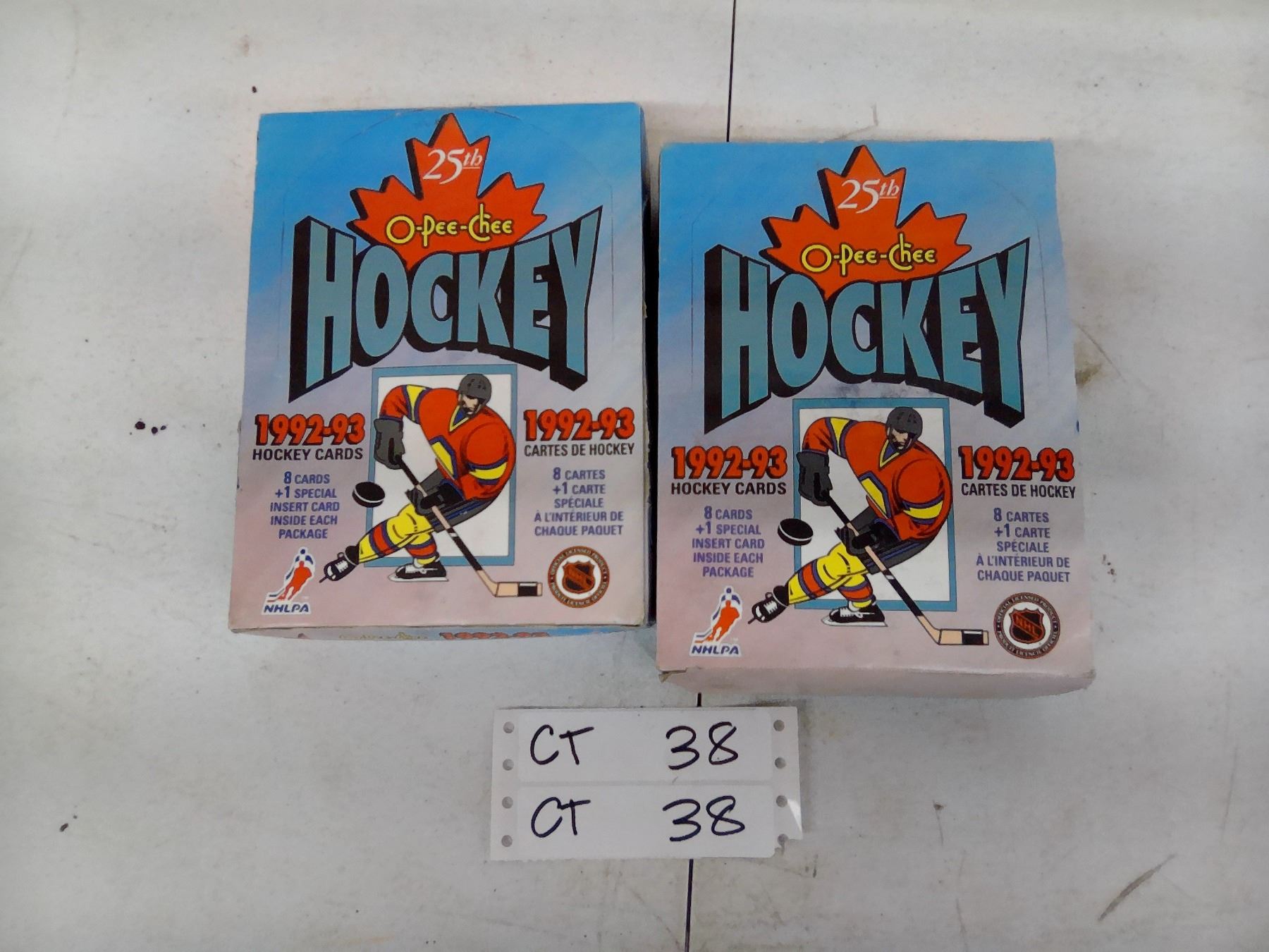 Lot 38 O-Pee-Chee 1992-93 Hockey Cards, 2 Boxes, 25th Anniversary Edition, 36 Packs, 8 Cards + 1 Insert