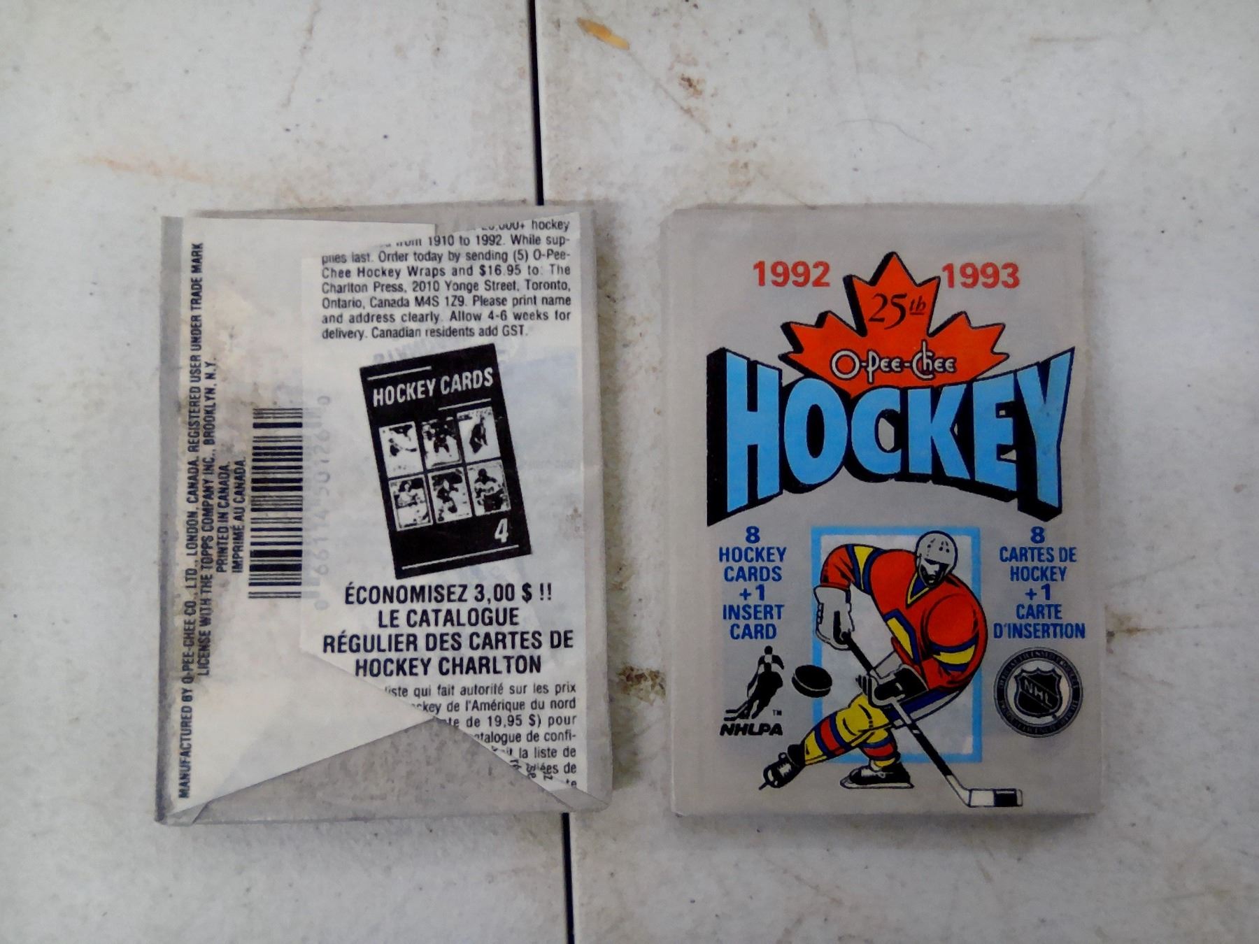 O-Pee-Chee 1992-93 Hockey Cards, 2 Boxes, 25th Anniversary Edition, 36 Packs, 8 Cards + 1 Insert