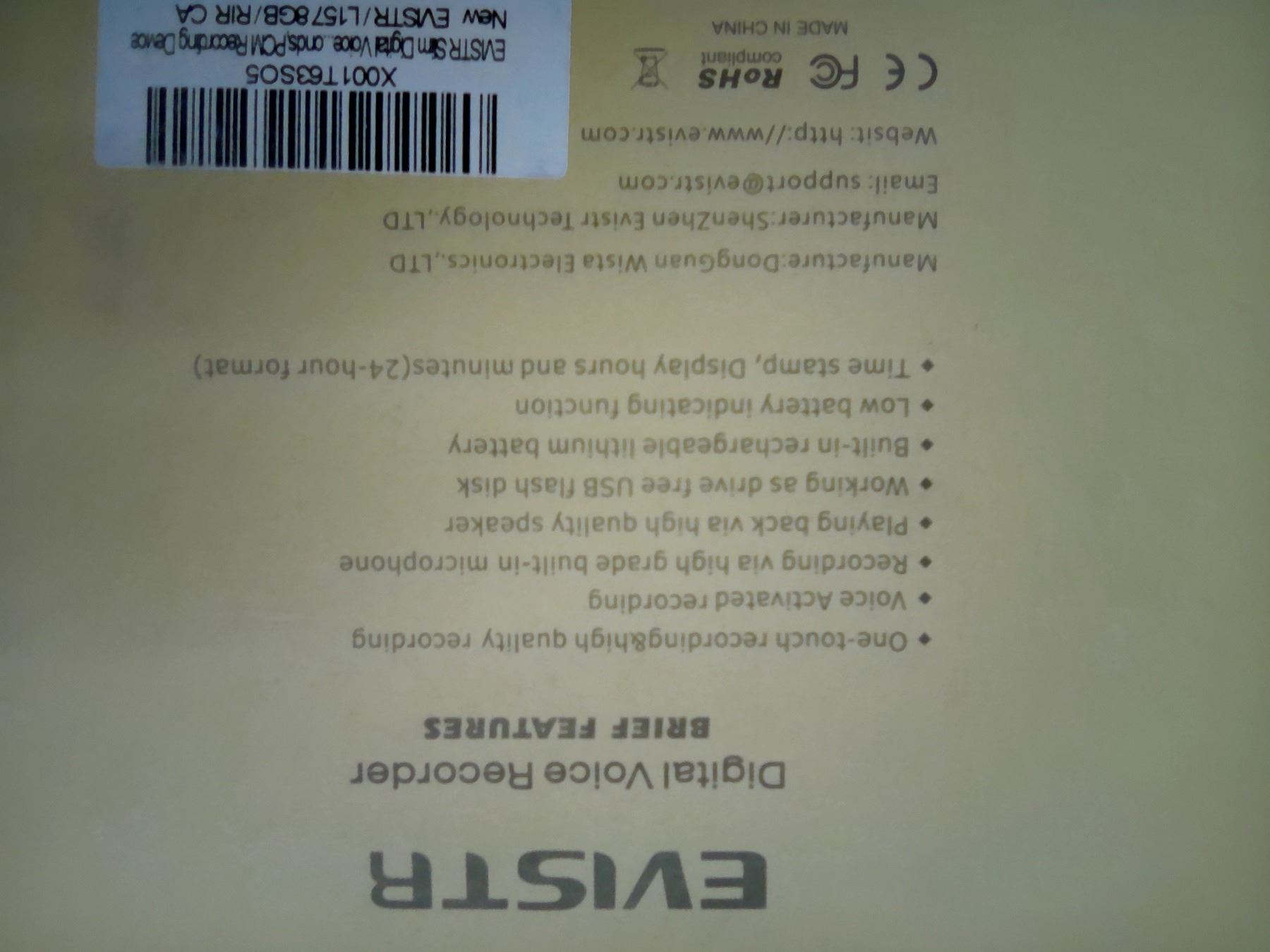 Lot 48B EVISTR L157 Digital Voice Recorder with Earphones and USB Cable