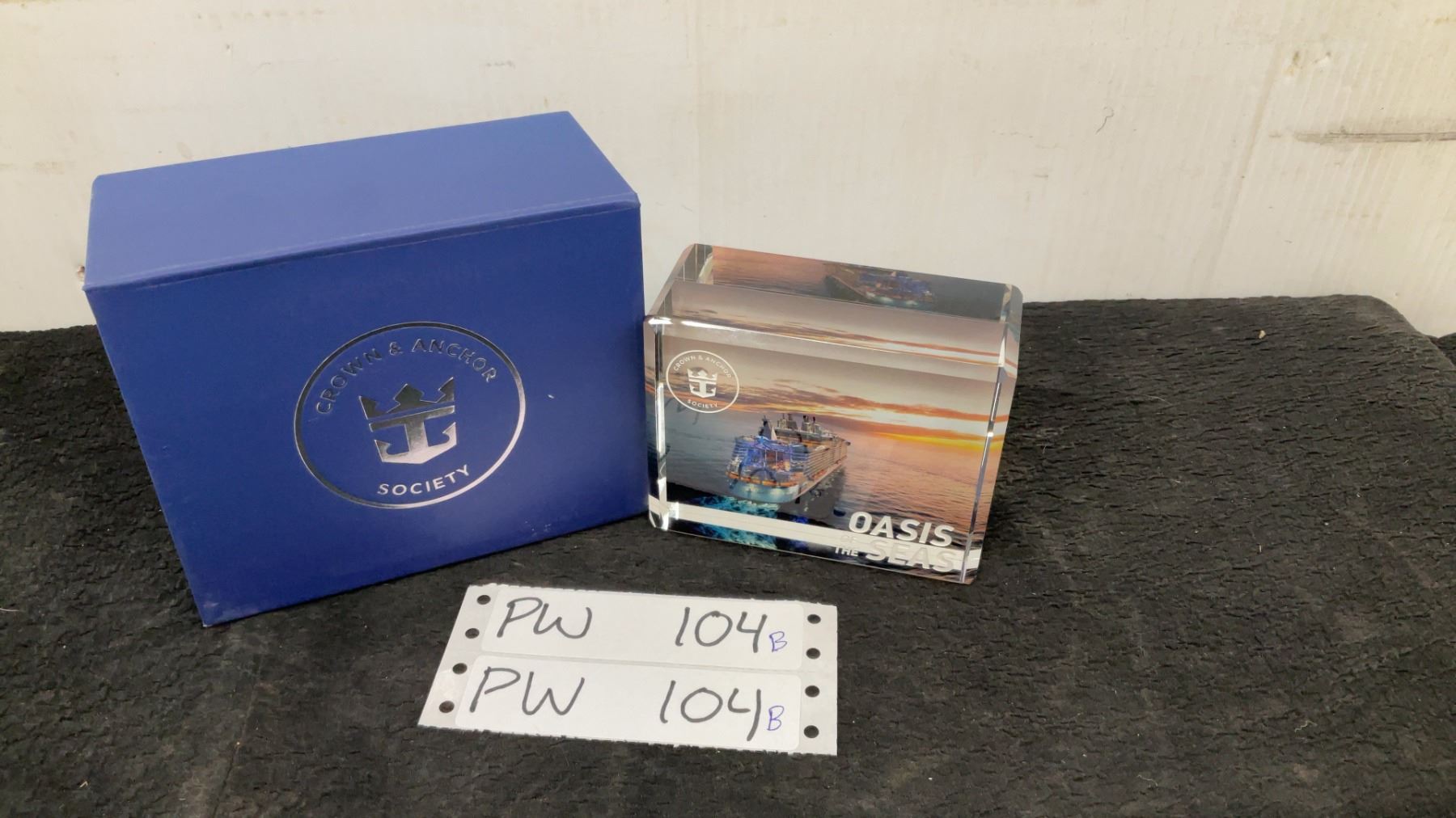Lot 104B Royal Caribbean Crown & Anchor Society Oasis of the Seas Crystal Paperweight with Box