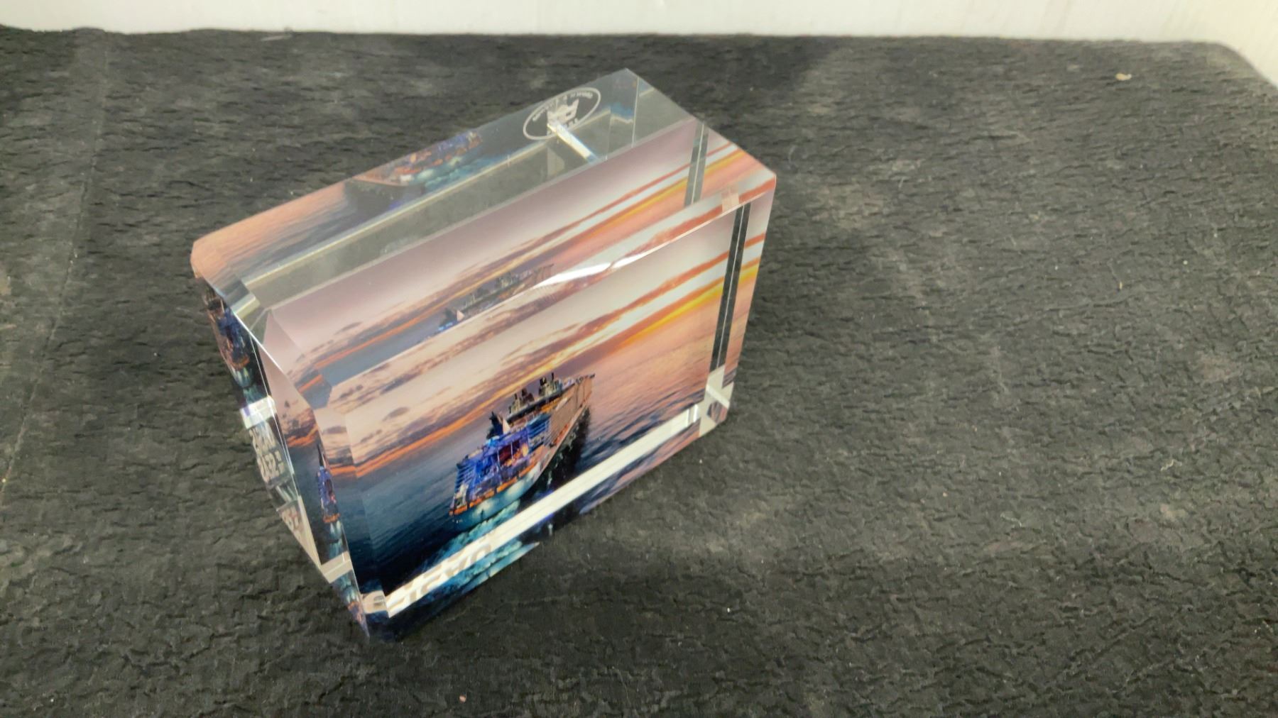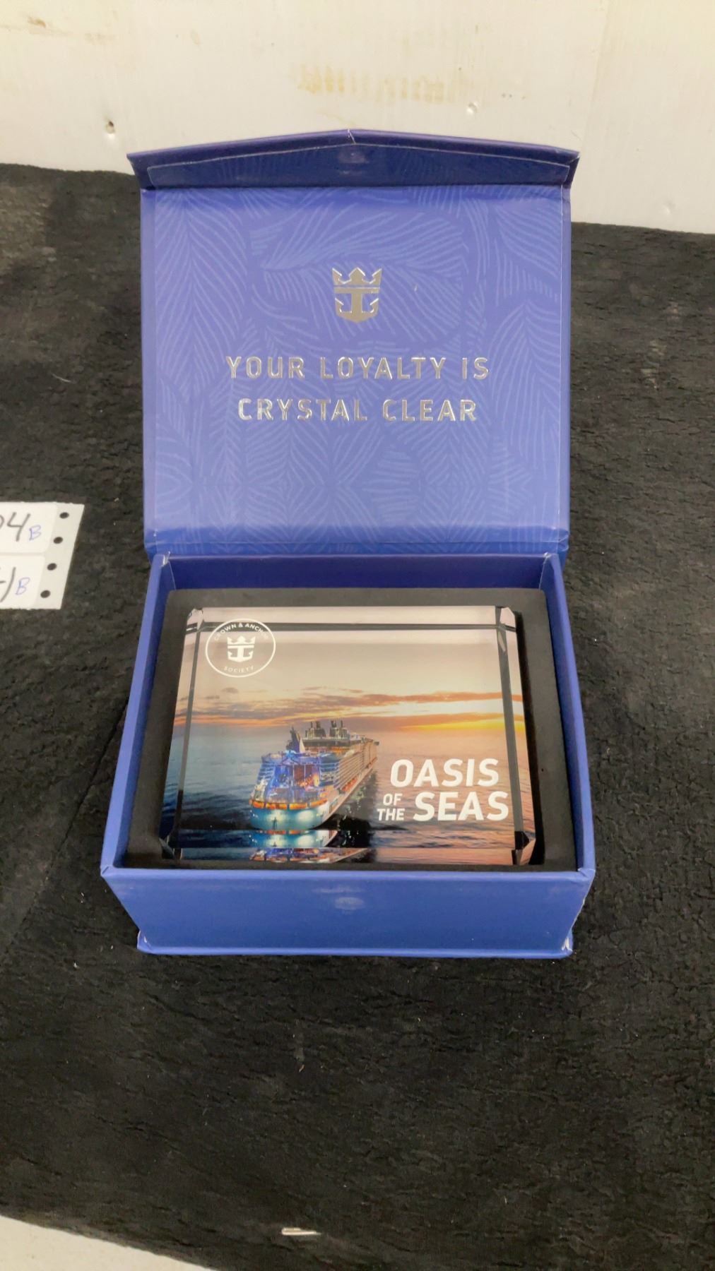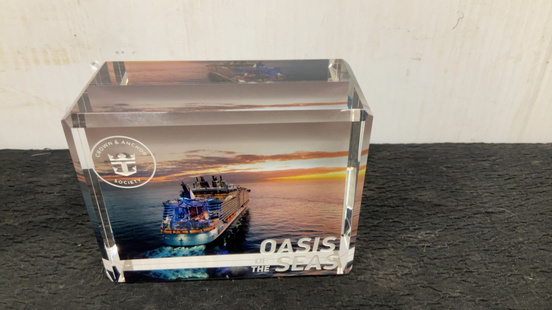 Royal Caribbean Crown & Anchor Society Oasis of the Seas Crystal Paperweight with Box