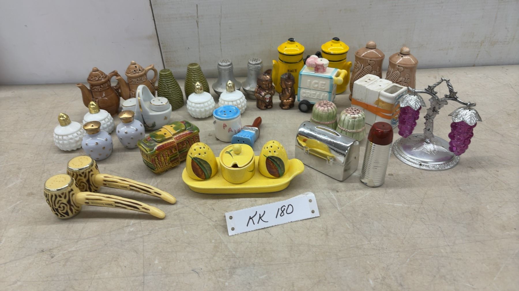 Lot 180 Vintage Salt and Pepper Shaker Collection, Assorted Novelty Designs, Ceramic, Plastic and Metal, 17