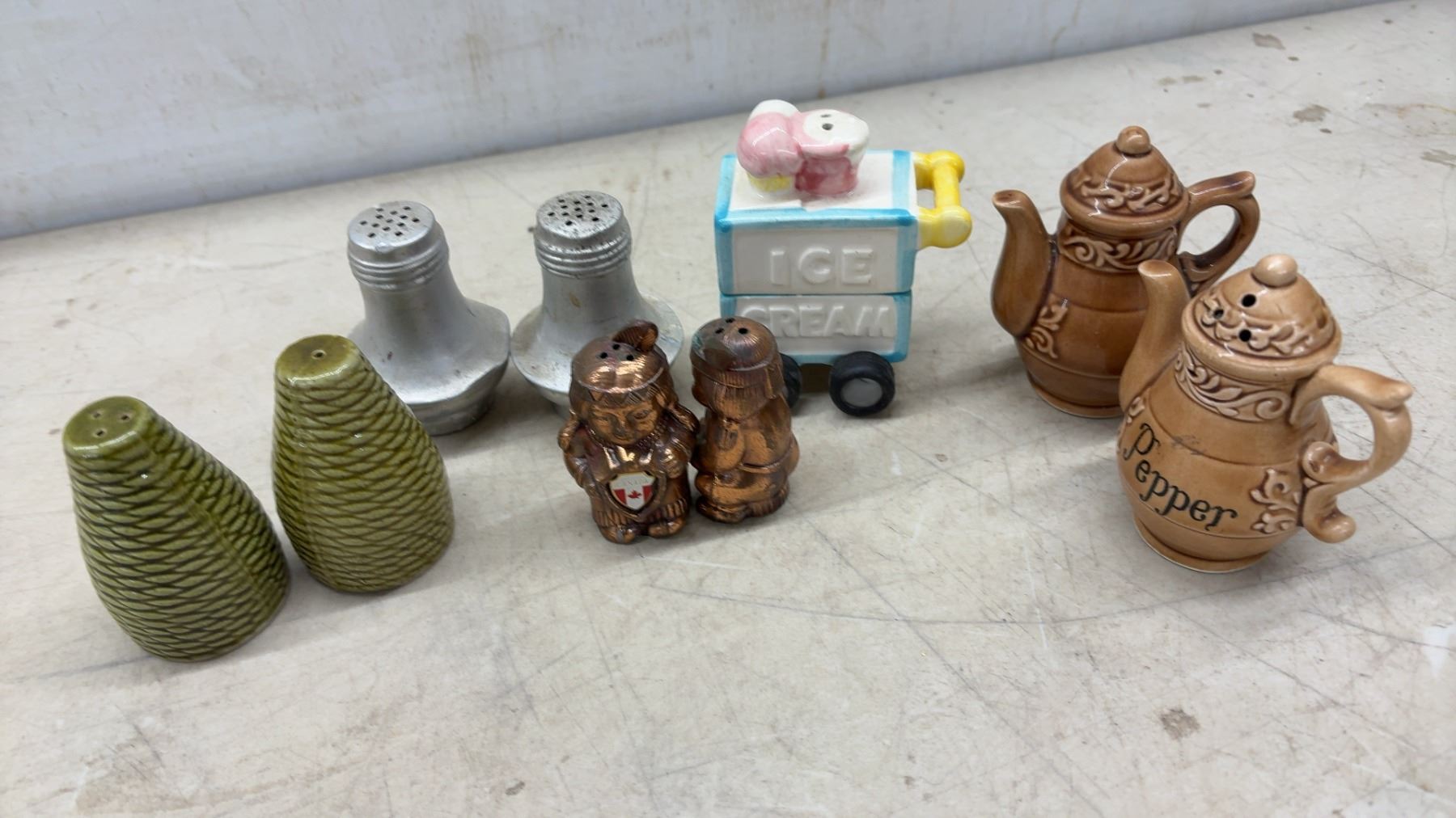 Vintage Salt and Pepper Shaker Collection, Assorted Novelty Designs, Ceramic, Plastic and Metal, 17