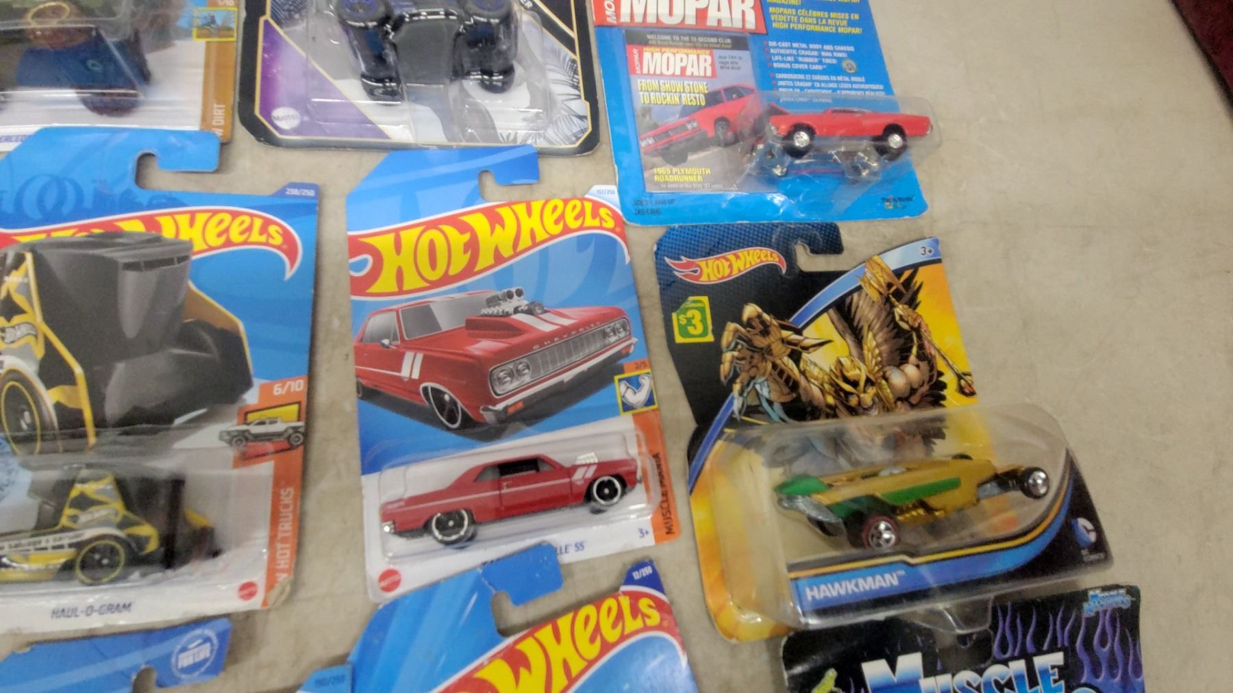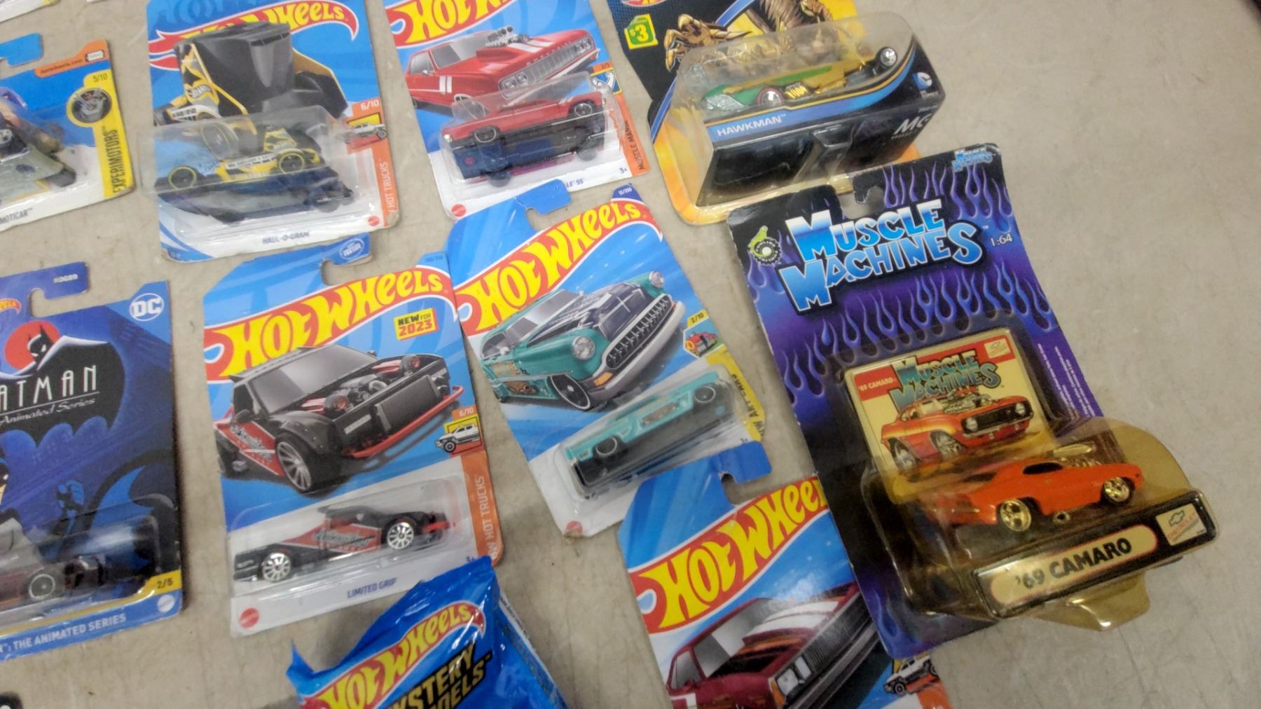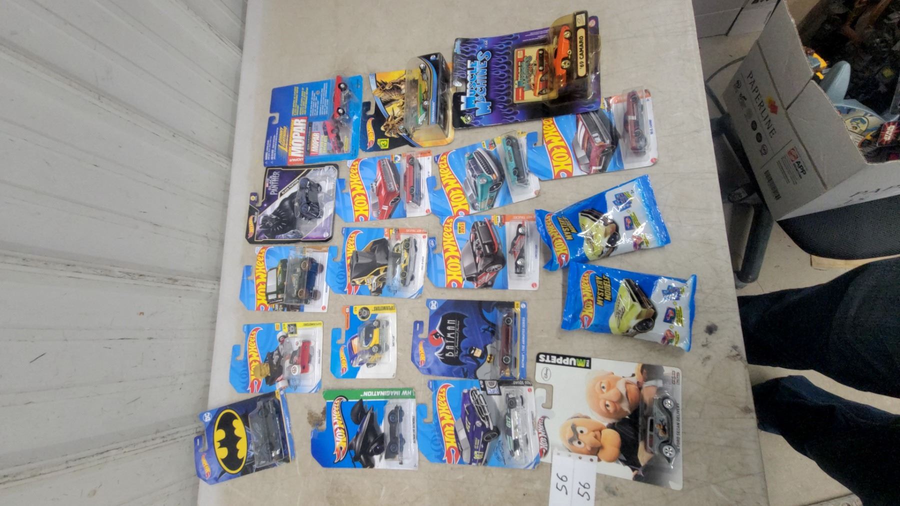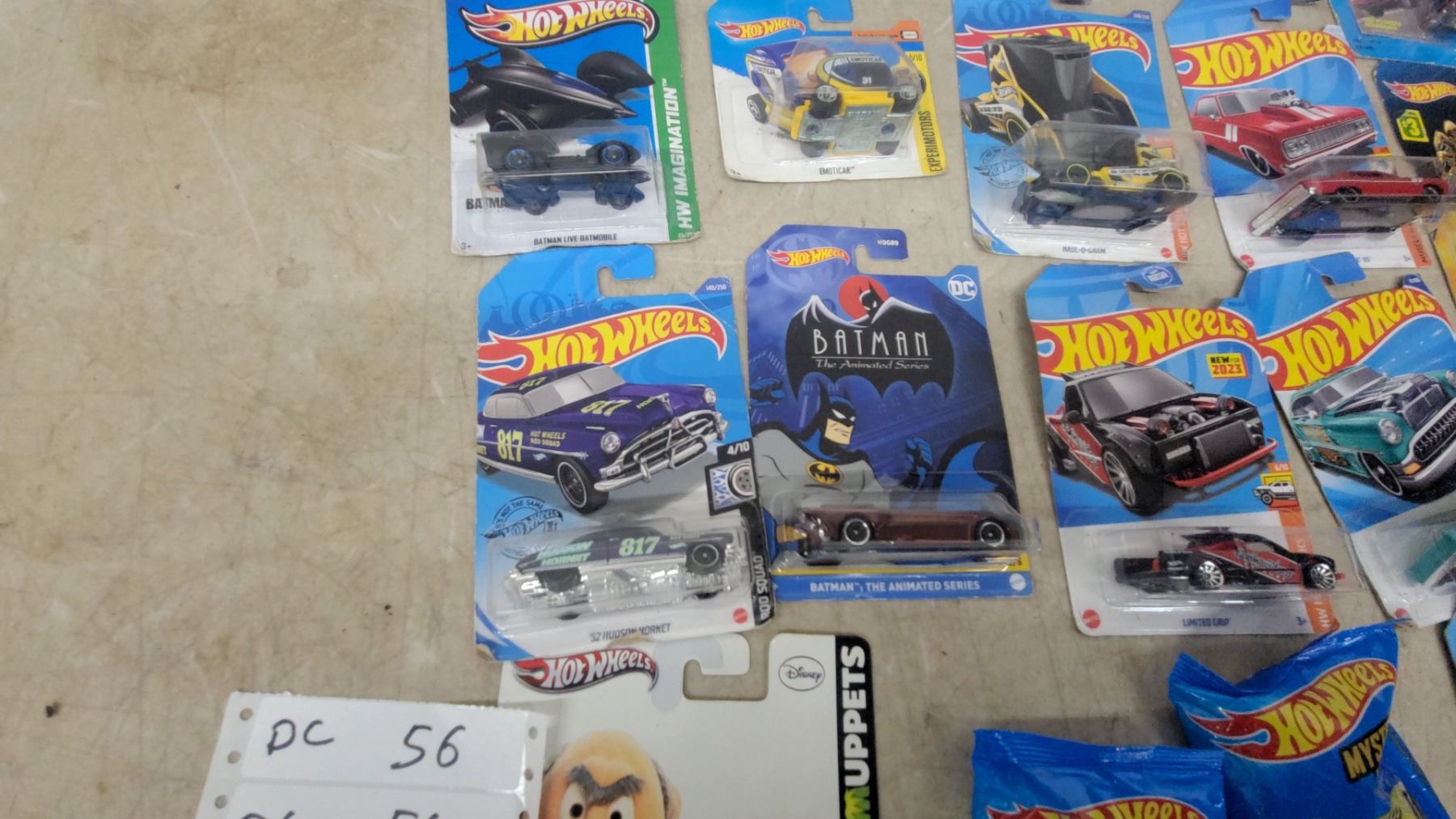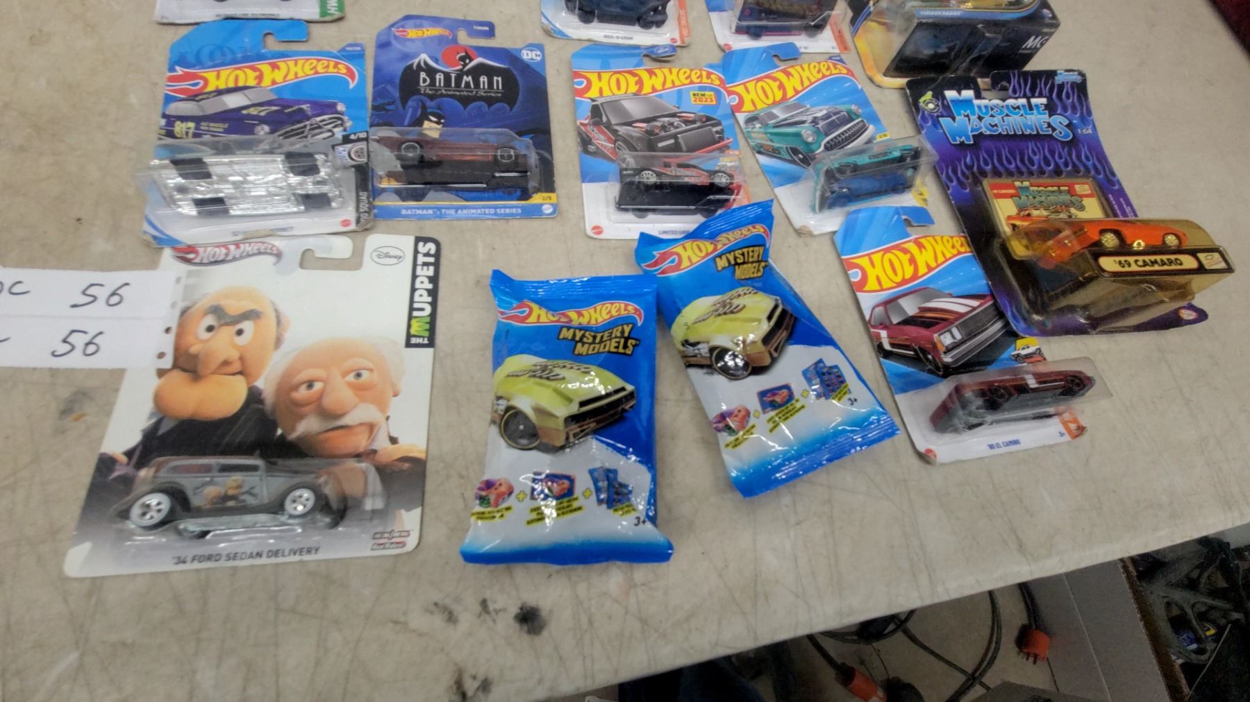 Lot 56 Hot Wheels & Diecast Car Lot Incl Batman, Black Panther, Muppets, Muscle Machines, Johnny Lightning