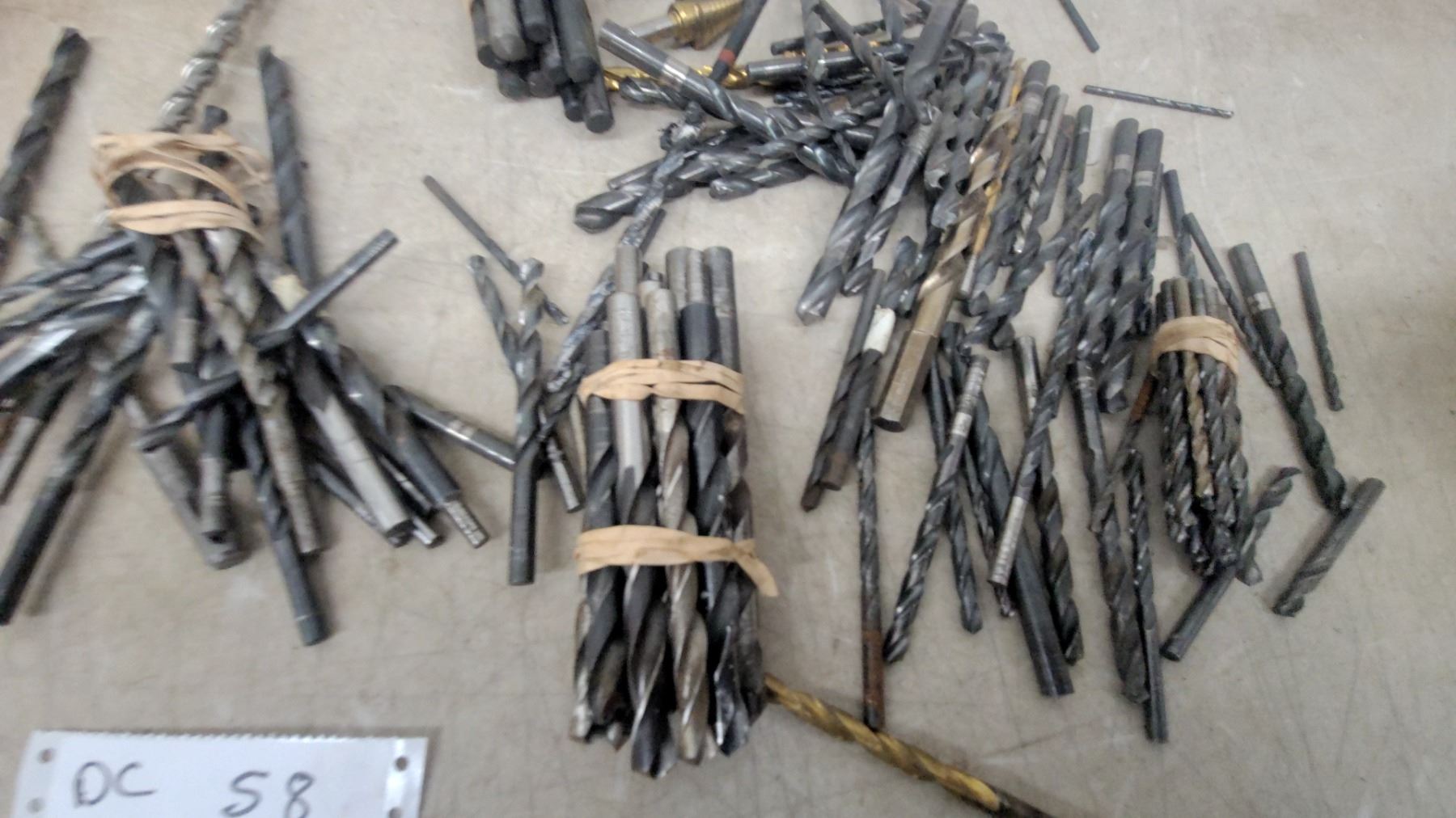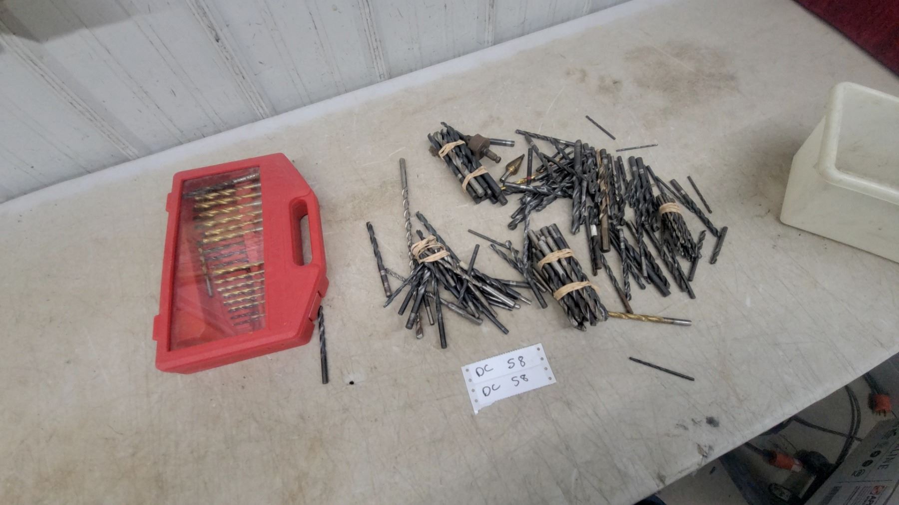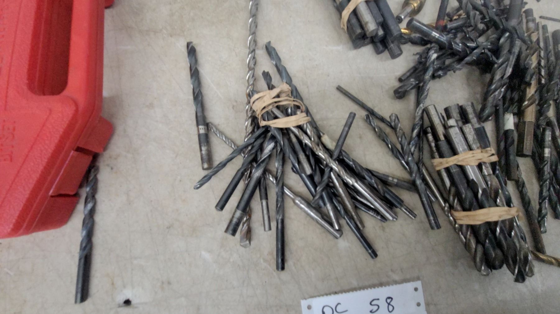 Lot 58 Assorted Drill Bit Lot with Red Plastic Case, Various Sizes, HSS and Titanium Coated