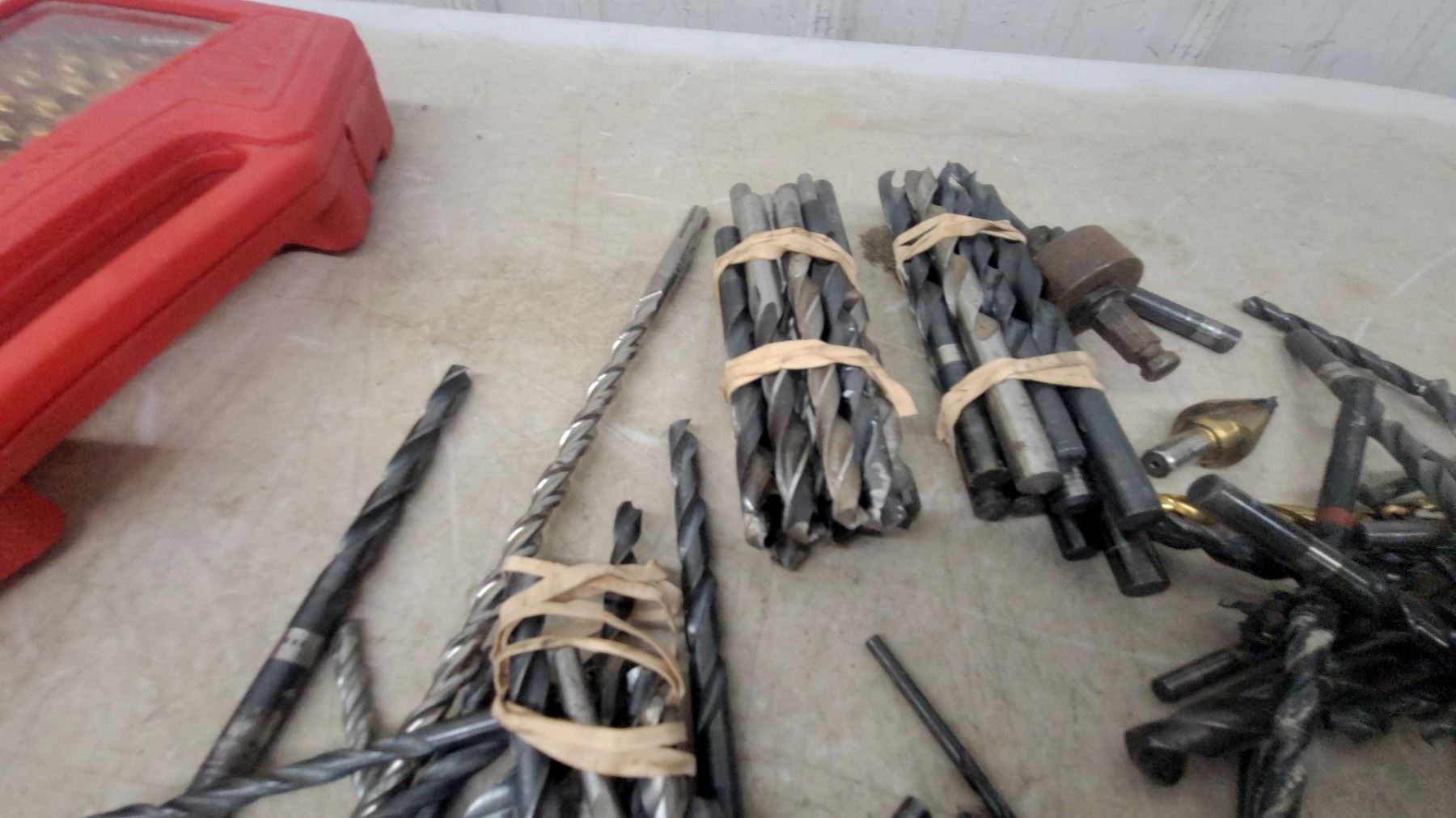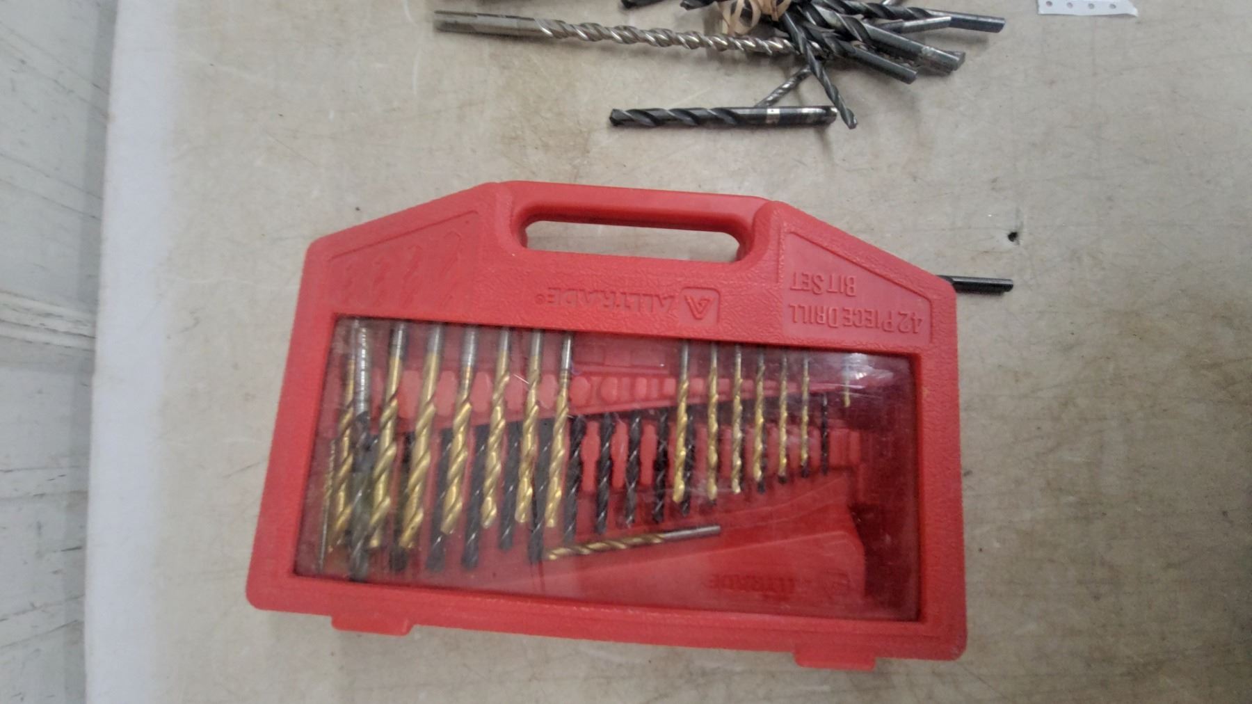 Assorted Drill Bit Lot with Red Plastic Case, Various Sizes, HSS and Titanium Coated