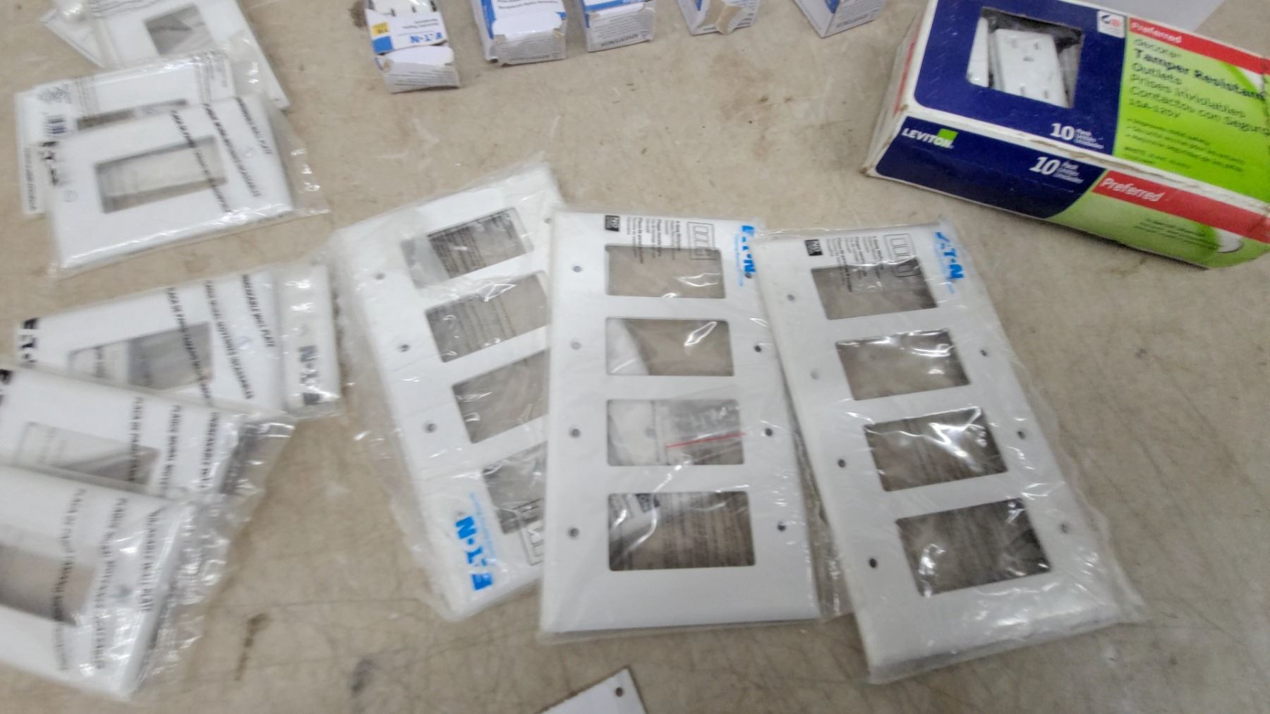 Lot 63 Eaton & Leviton Tamper Resistant Outlets 15A-125V w/ Decora Wall Plates, Assorted Lot