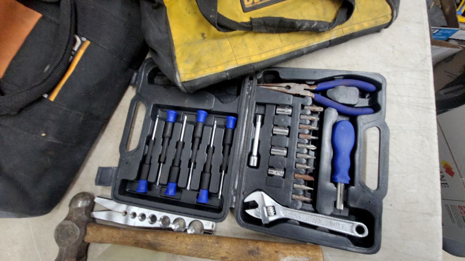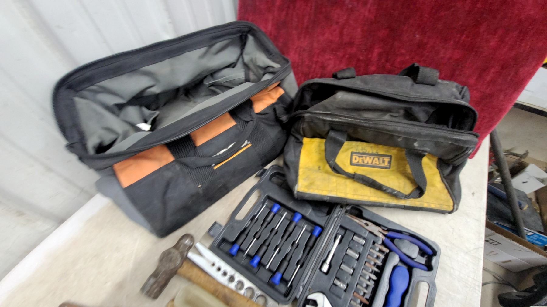 Assorted Screwdrivers, Tool Kit with Sockets & Bits, DeWalt Tool Bag, Ball Peen Hammer