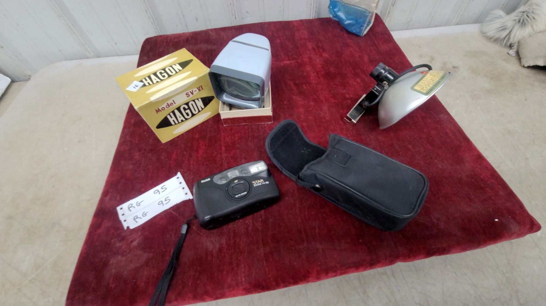 Lot 95 Hagon SV-VI Slide Viewer with 35mm Compact Camera and Carrying Case and Kodak Flash Holder