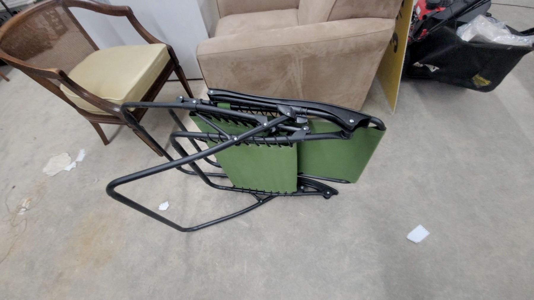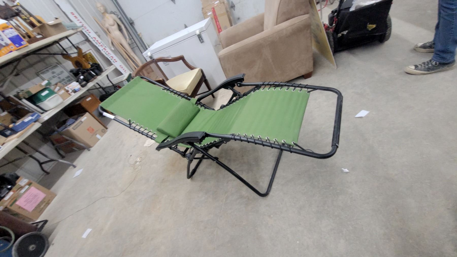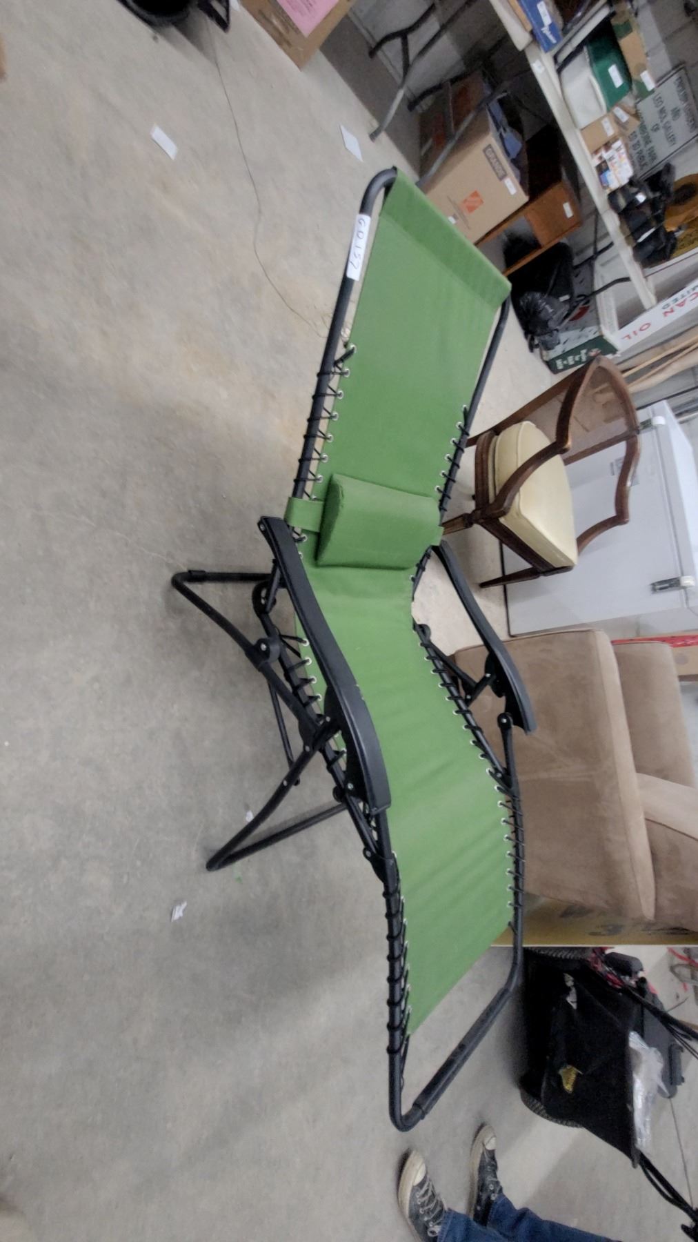 Lot 159B Green Zero Gravity Lounge Chair with Black Metal Frame and Headrest Pillow
