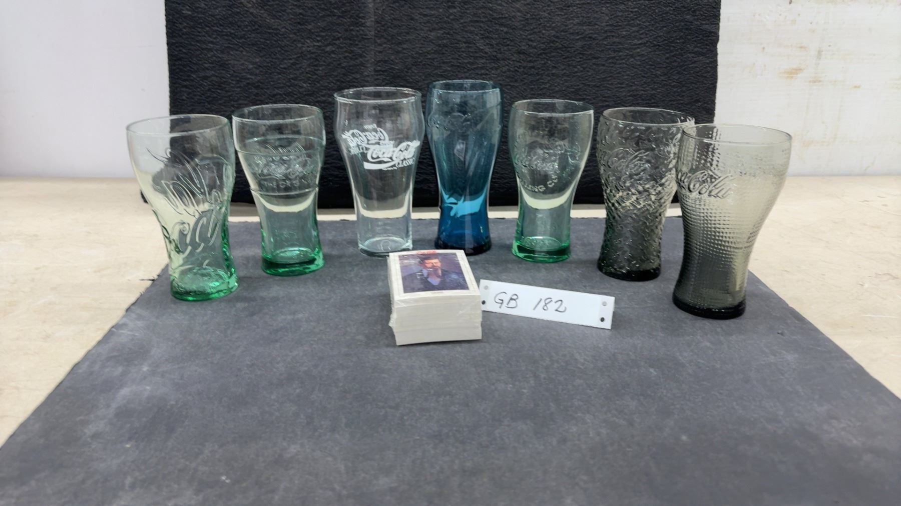 Lot 182 7 Vintage Coca-Cola Glass Collection Assorted Colors & Styles and Coca-Cola 1993 Trading Cards