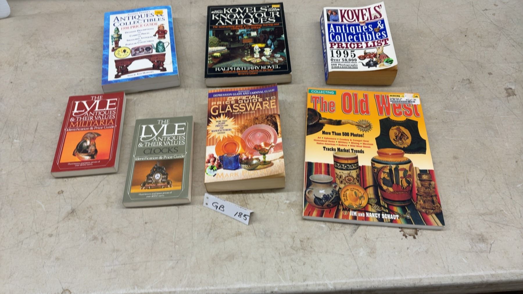 Lot 185 Collection of 7 Antiques & Collectibles Price Guide Books - Kovels, Lyle, Glassware, Old West