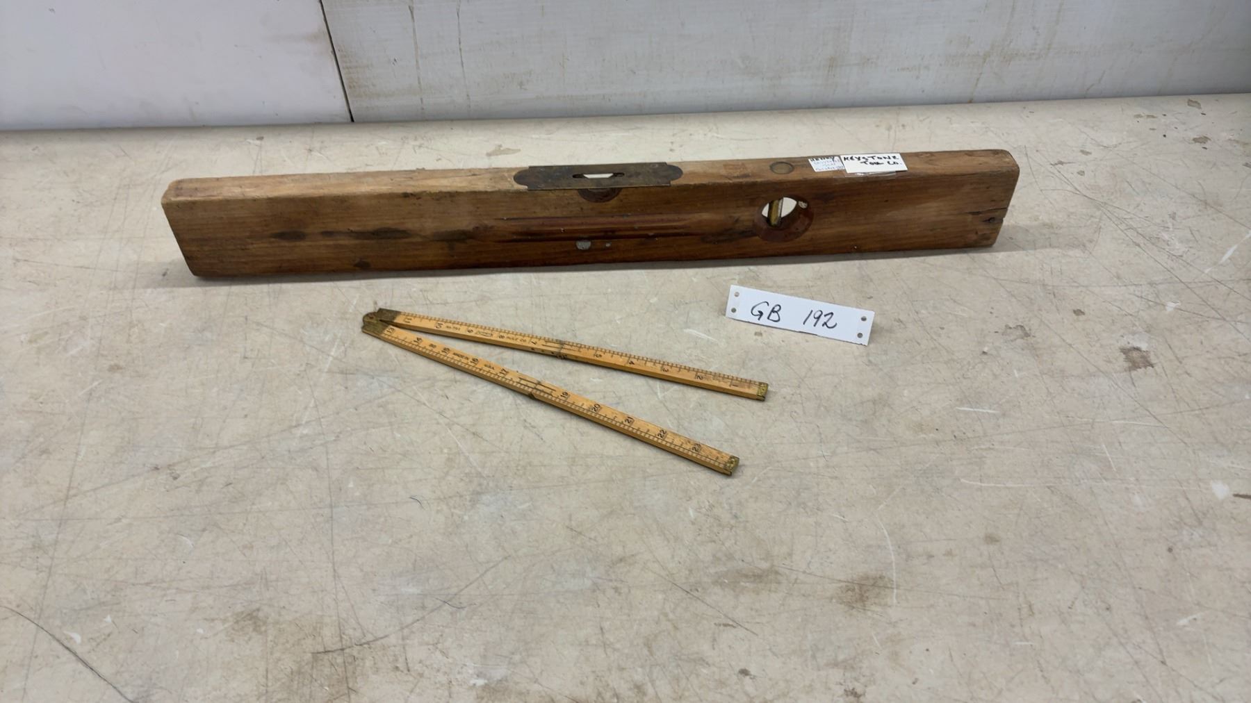 Lot 192 Antique Henry Disstone & Son Keystone Wooden Spirit Level, Patented Oct 29, 1913 and Lufkin No. 702
