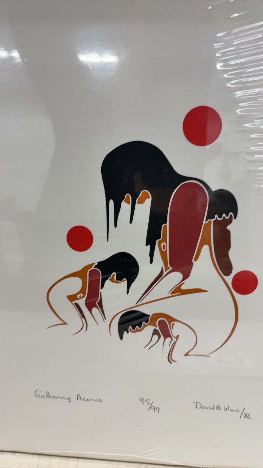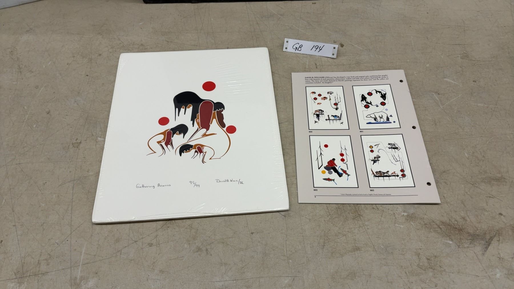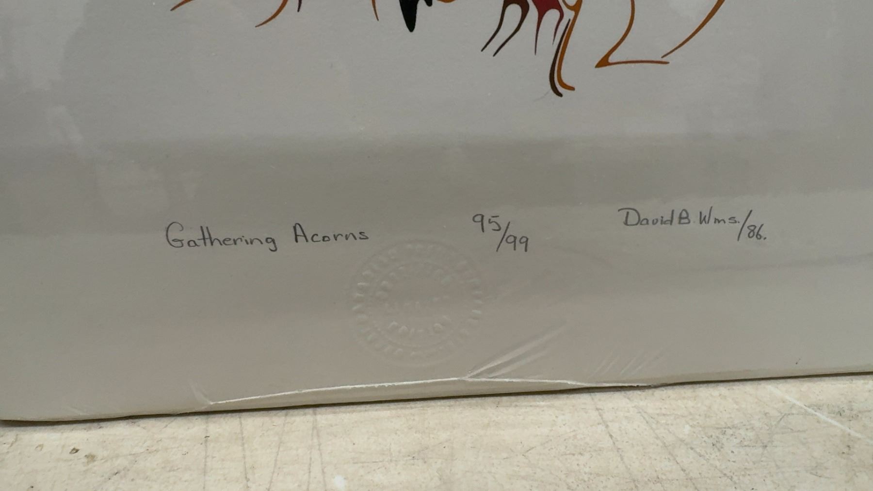 Lot 194 David B. Williams "Gathering Acorns" Limited Edition Print 95/99, 1986, Ojibway Art 14 x 12"