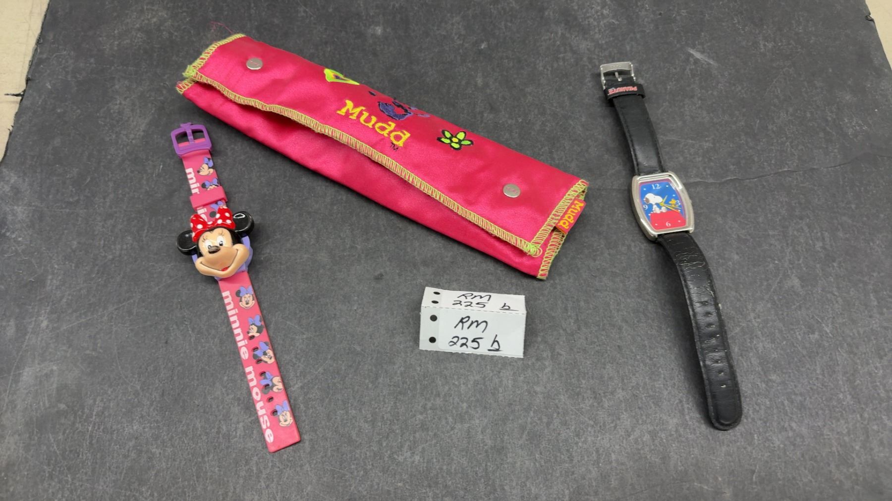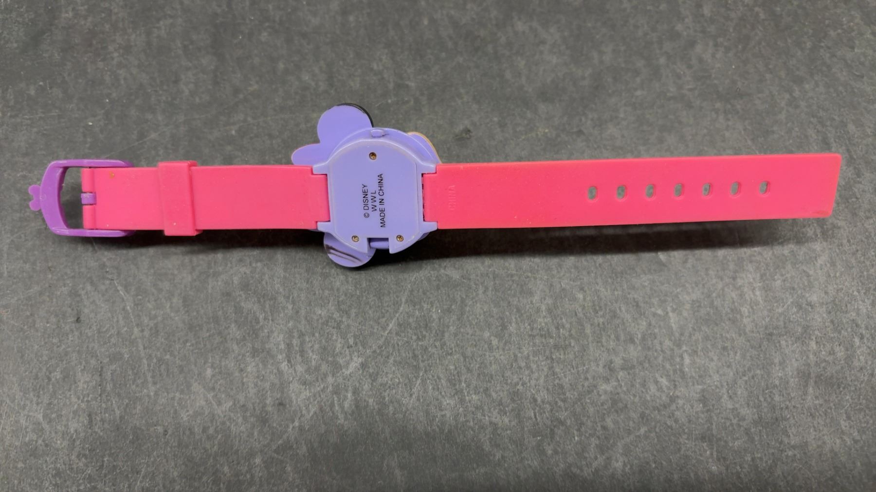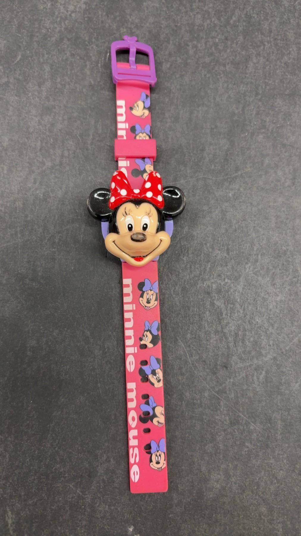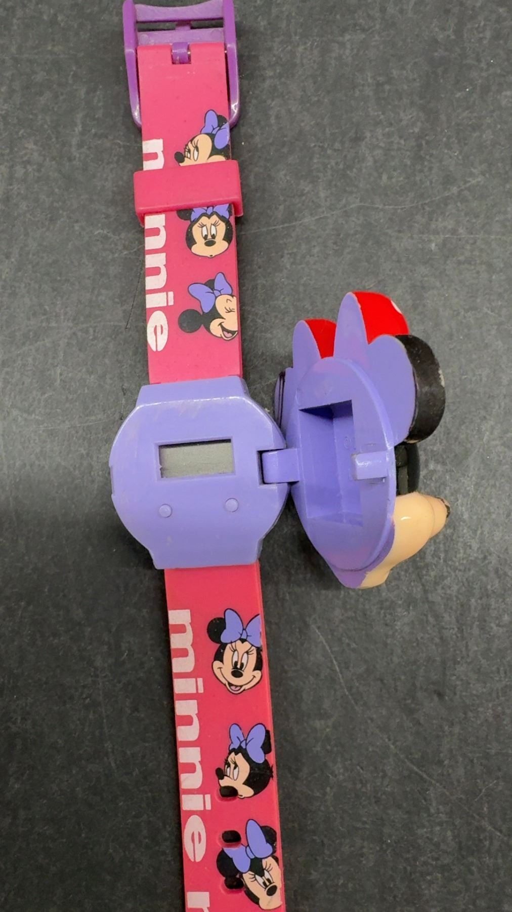 Lot 225B Vintage: Minnie Mouse Kids Digital Watch with Flip-Top Cover, Pink/Purple Plastic Band (Needs