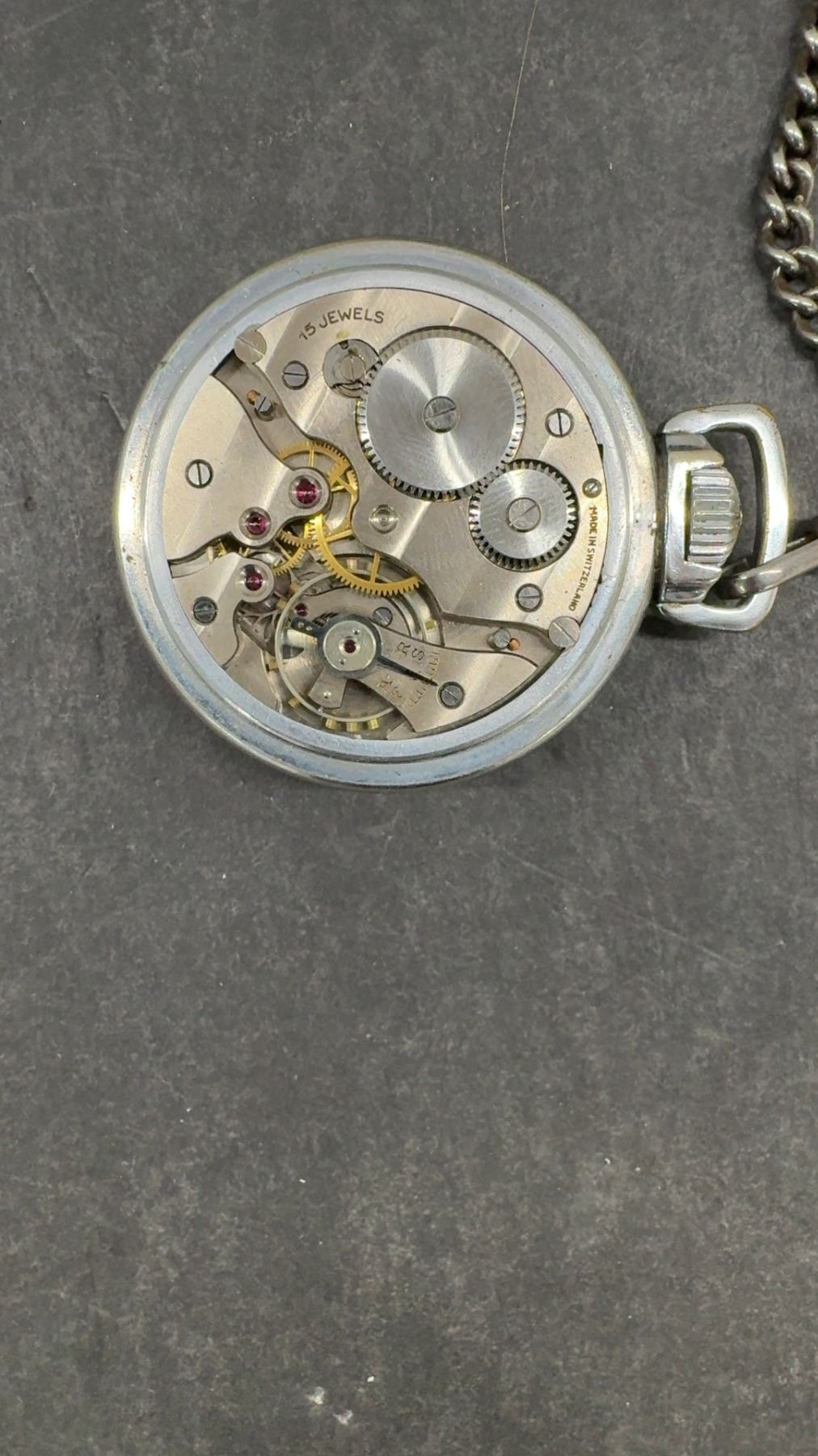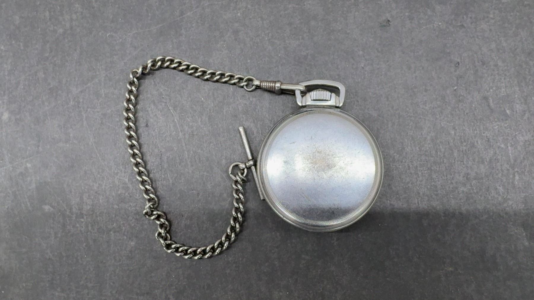 Lot 227B Vintage Superva Swiss Made 15 Jewel Pocket Watch with Nickel Silver Case and Chain, Working