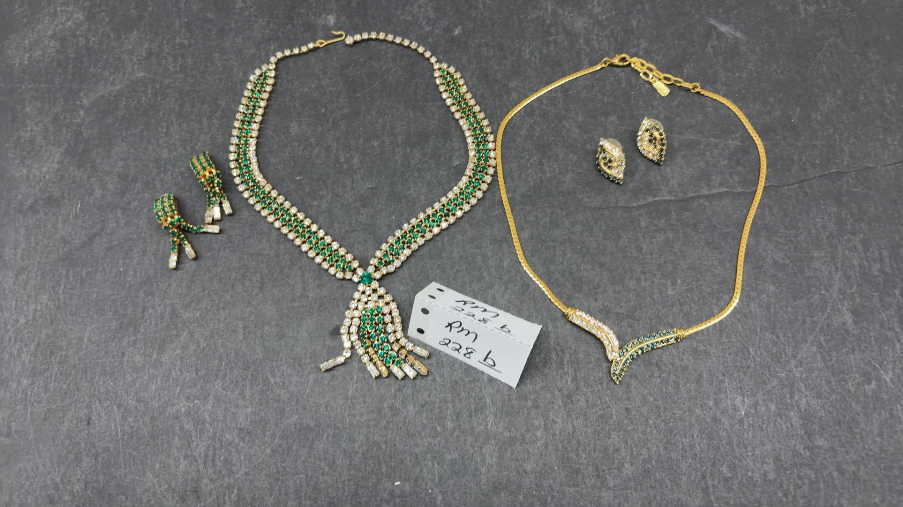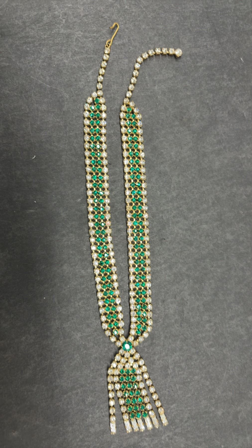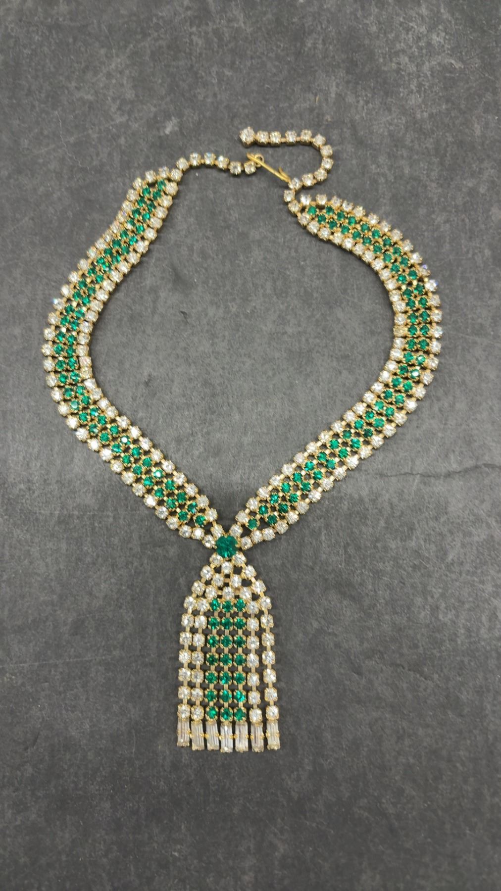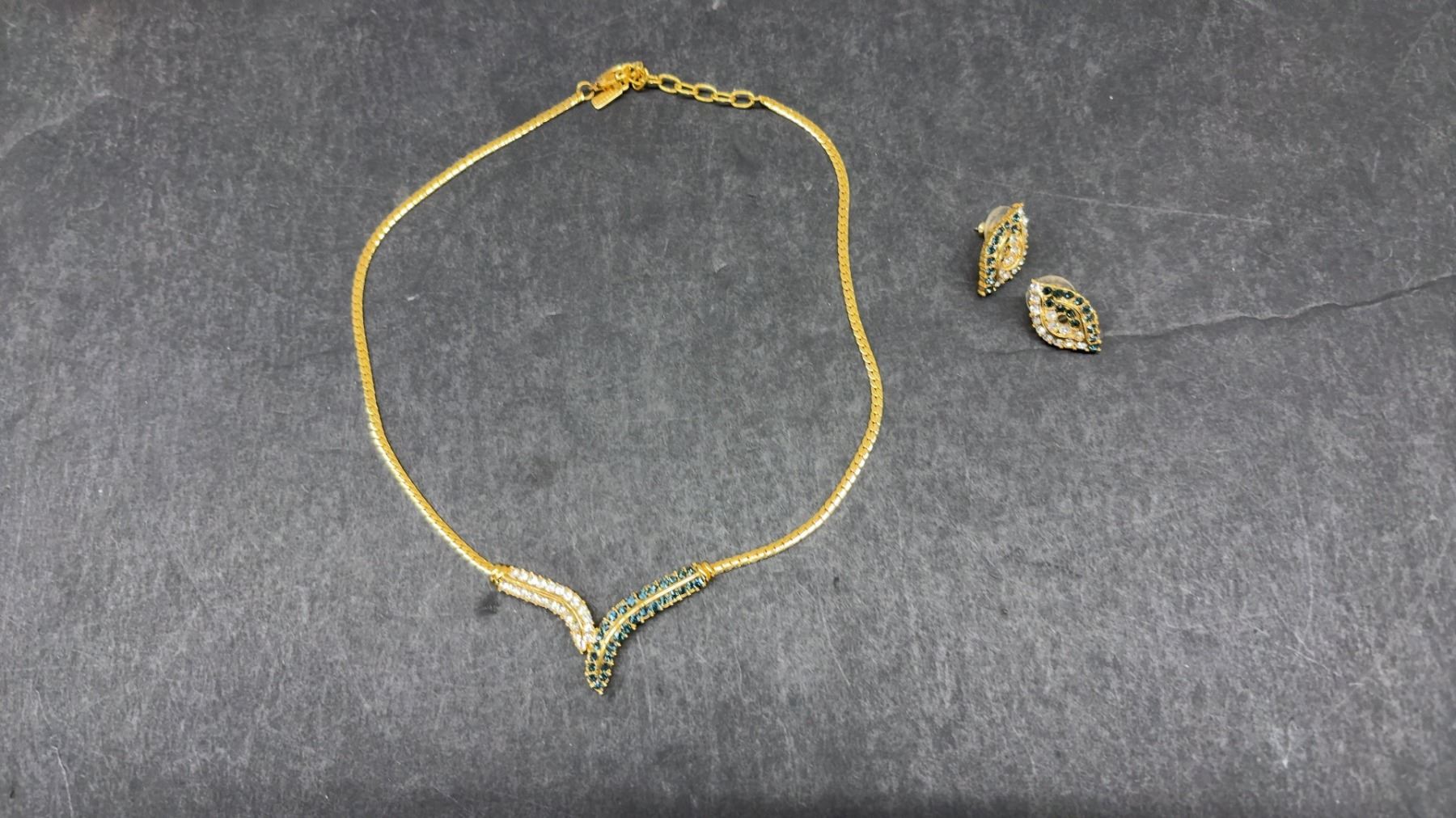 Lot 228B Vintage Rhinestone Jewelry Set with Green and Clear Stones: Necklace & Earrings