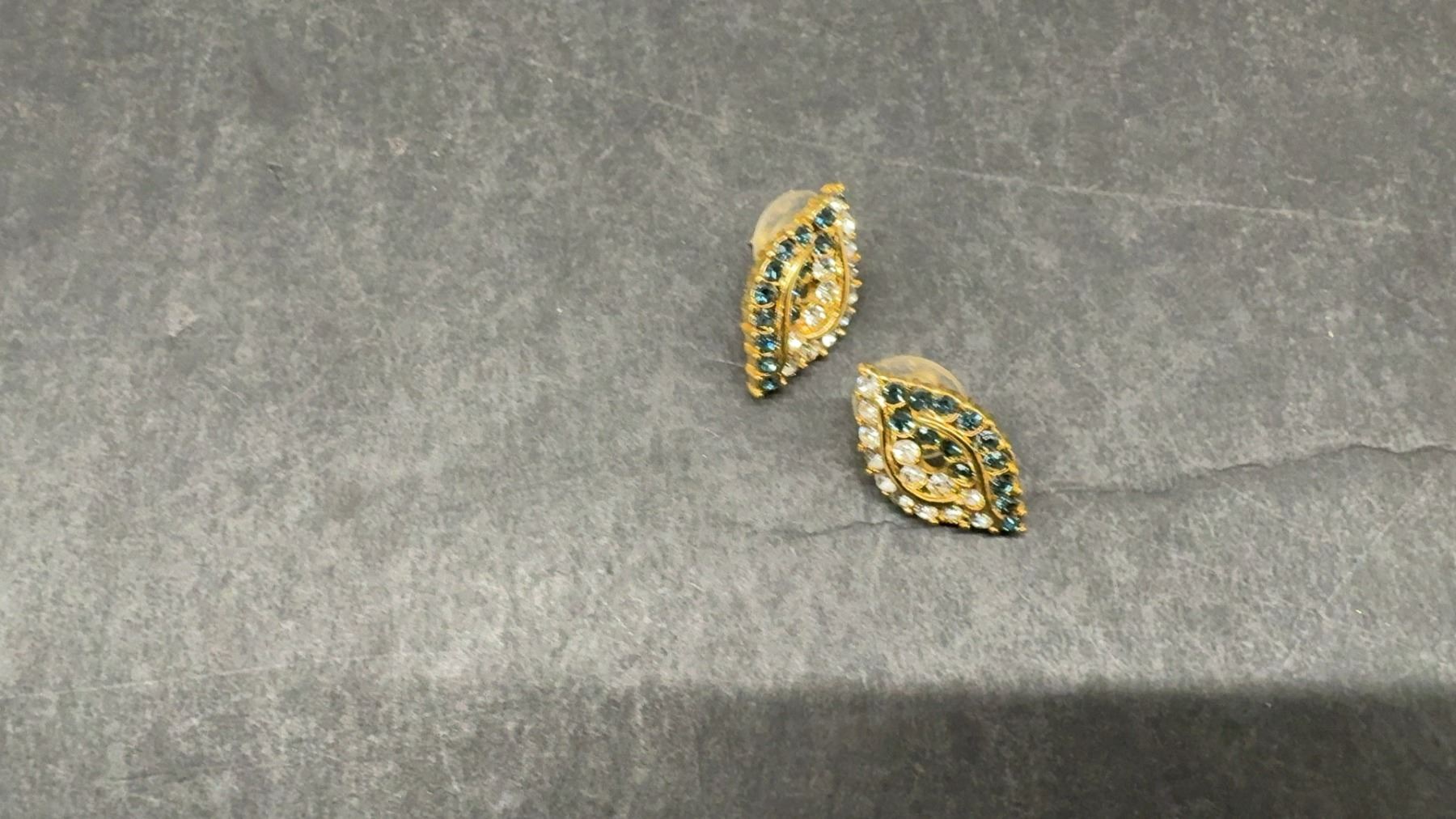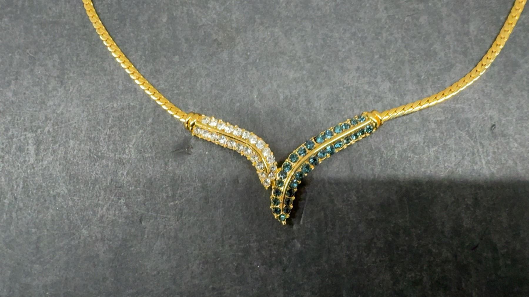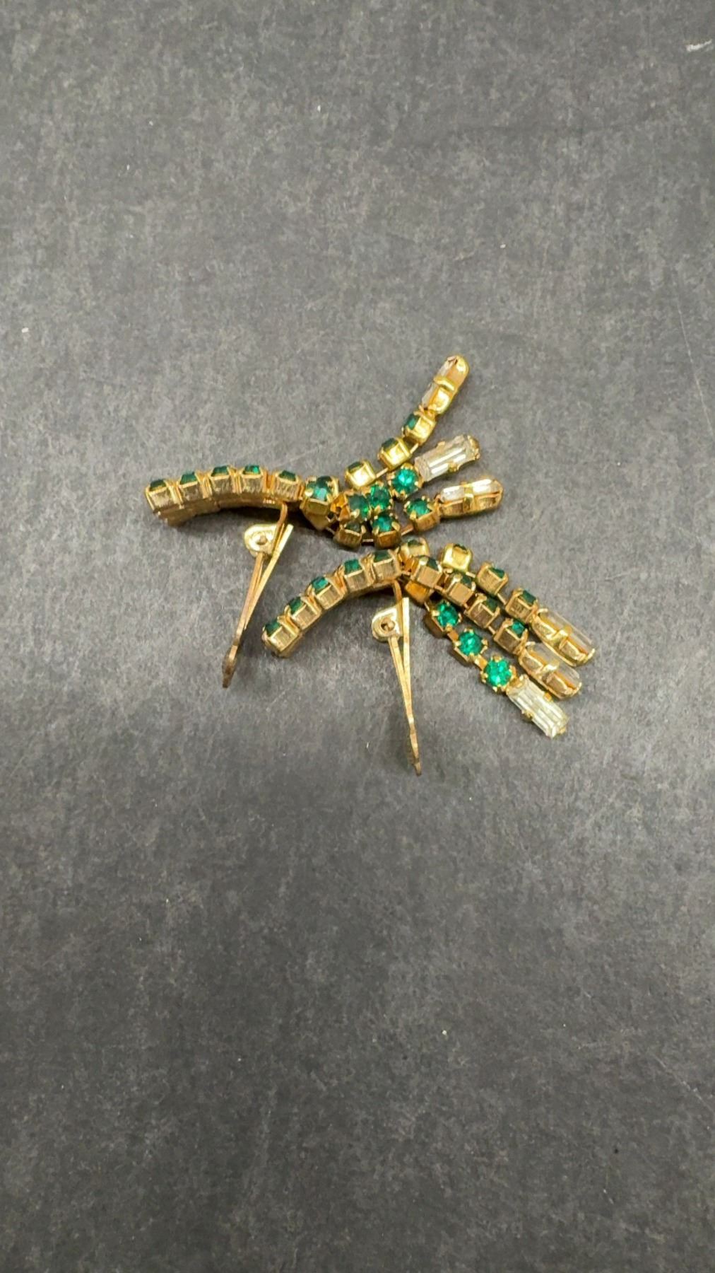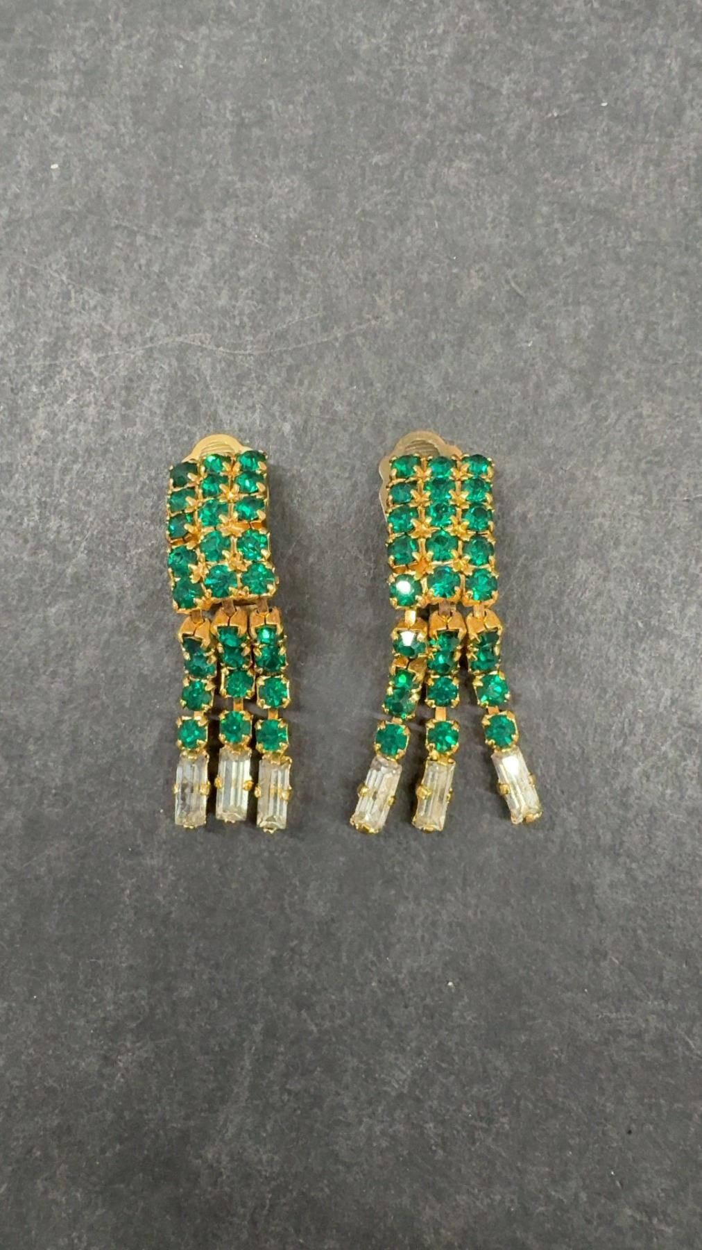 Lot 228B Vintage Rhinestone Jewelry Set with Green and Clear Stones: Necklace & Earrings