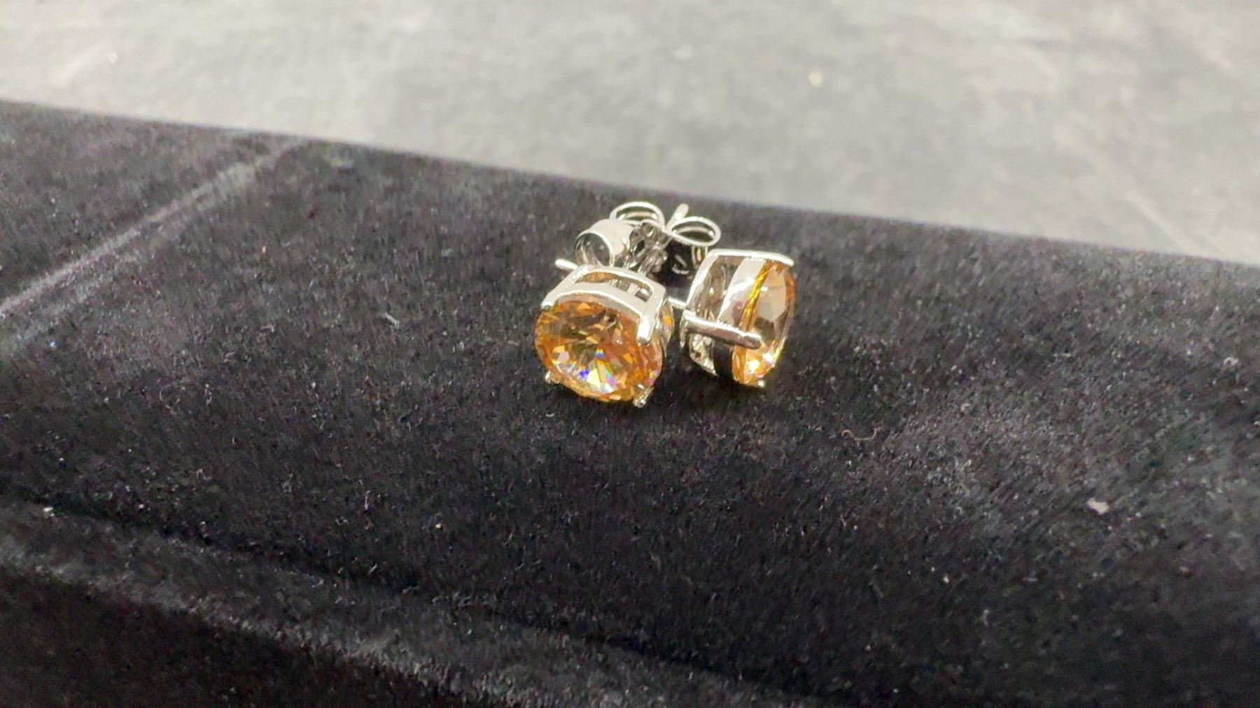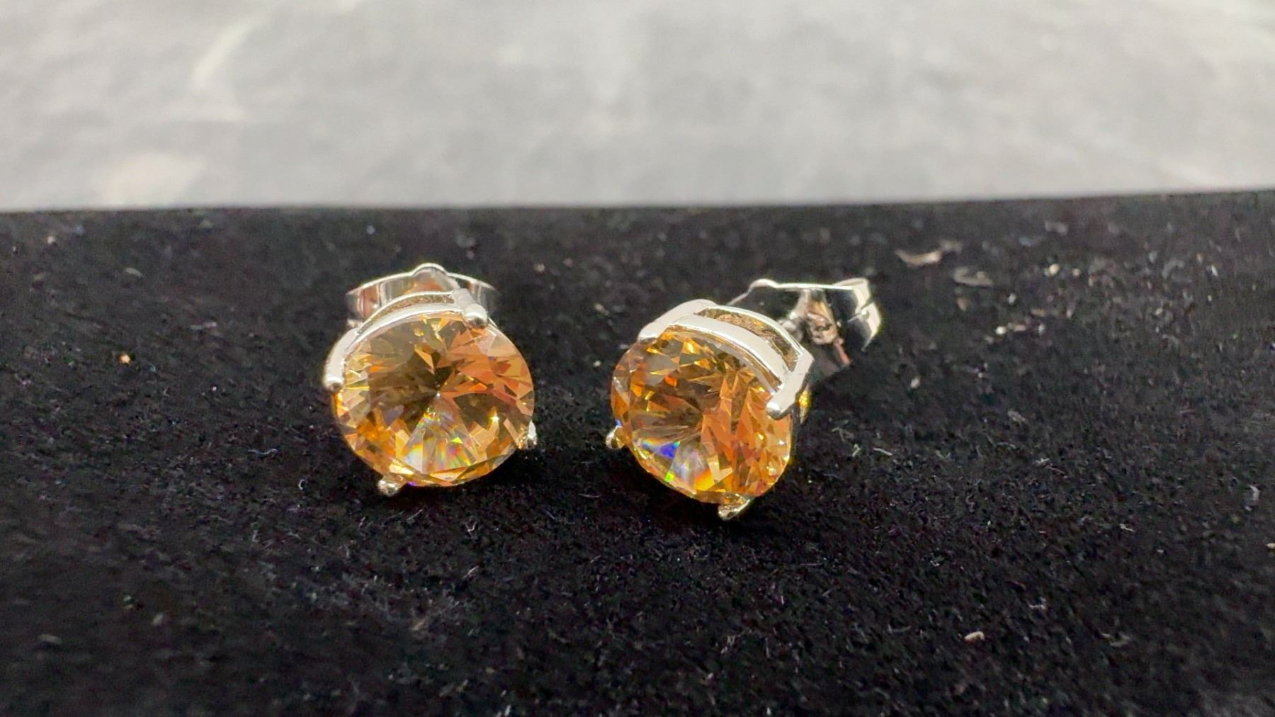 Lot 234B New Platinum Plated 2.0 Ct Each Champagne Simulated Diamond (CZ) Stud Earrings, Round Cut