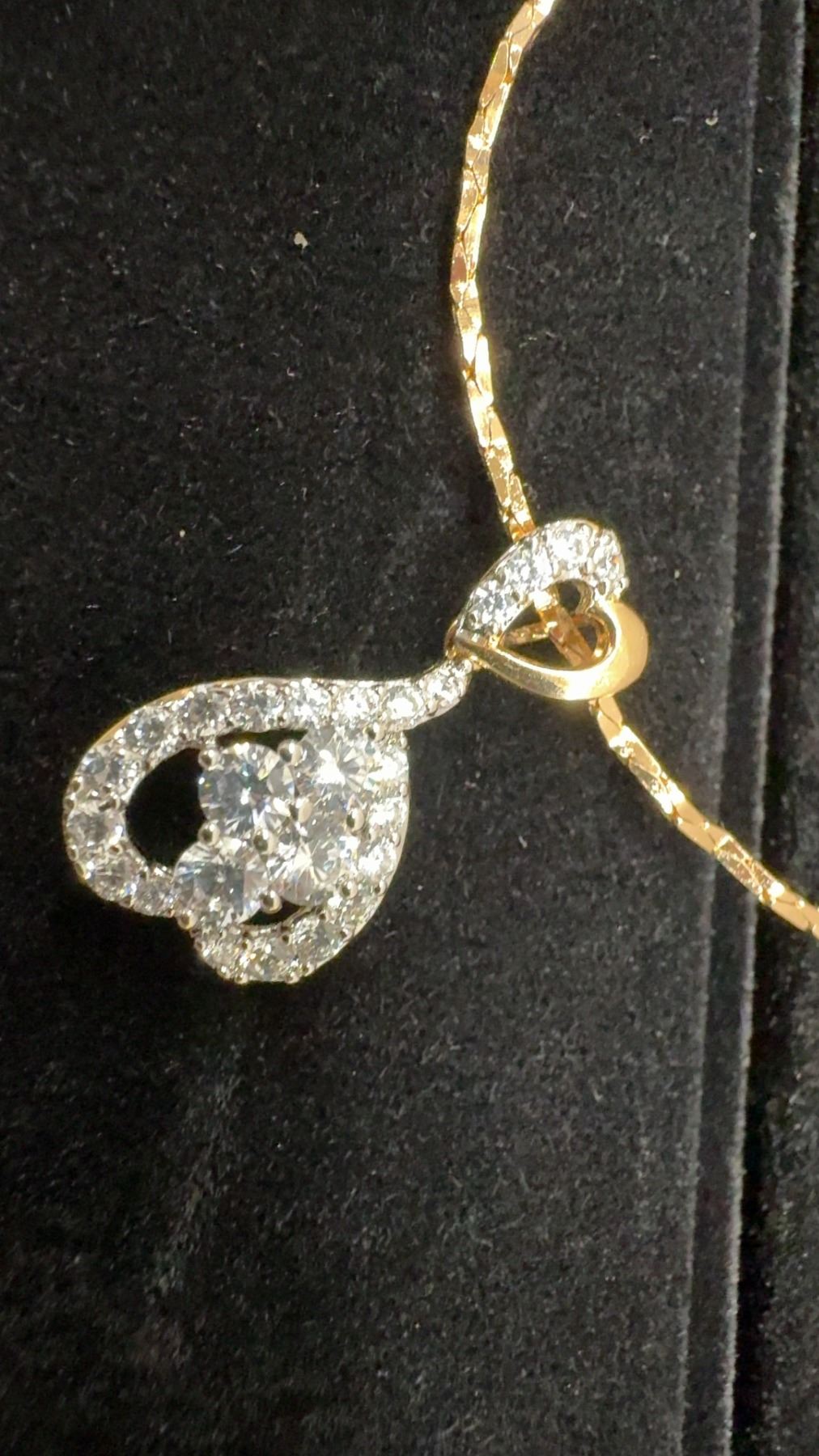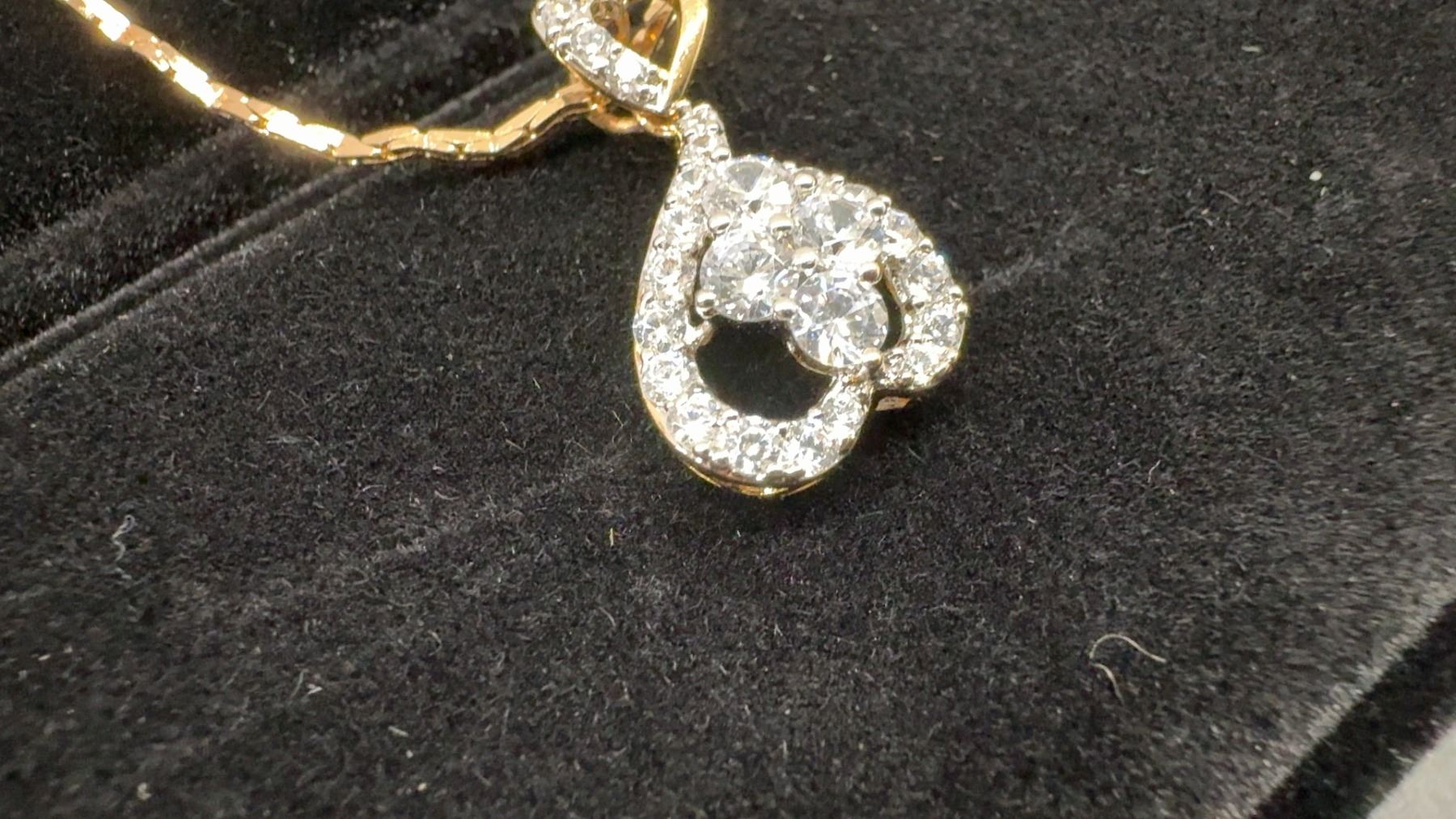 Lot 235B New 18K Gold-Plated 24.0 Mm Simulated Diamond (CZ) Inverted Heart Necklace Chain 18" Ling with