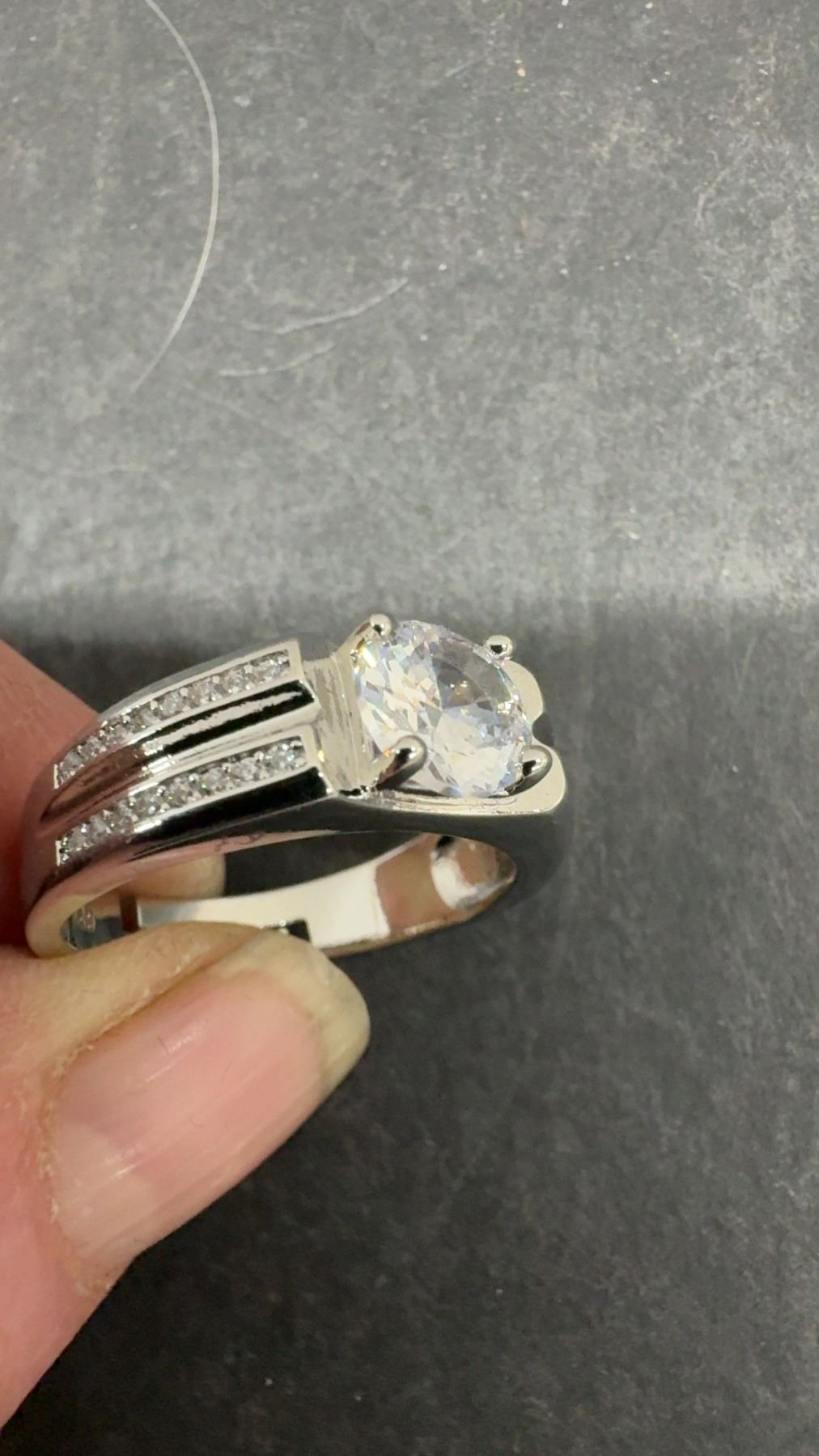New Platinum Plated 1.0ct Simulated Diamond (CZ) Man's Ring - Resizable