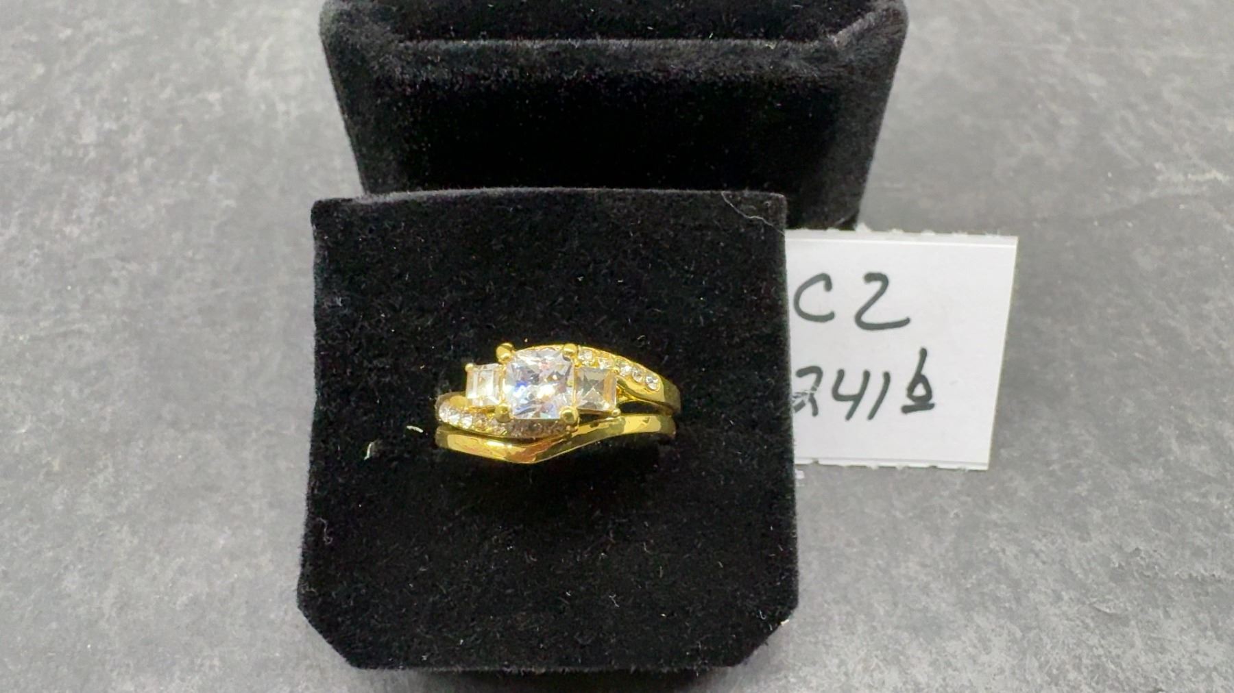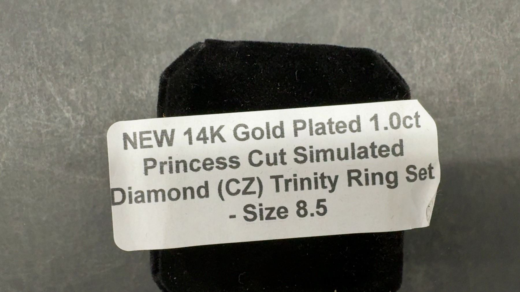 Lot 241B New 14K Gold Plated 1.0ct Princess Cut Simulated Diamond (CZ) Trinity Ring Set - Size 8.5