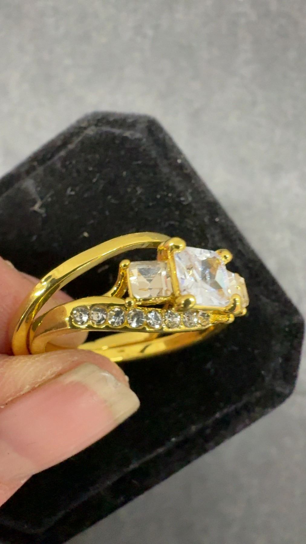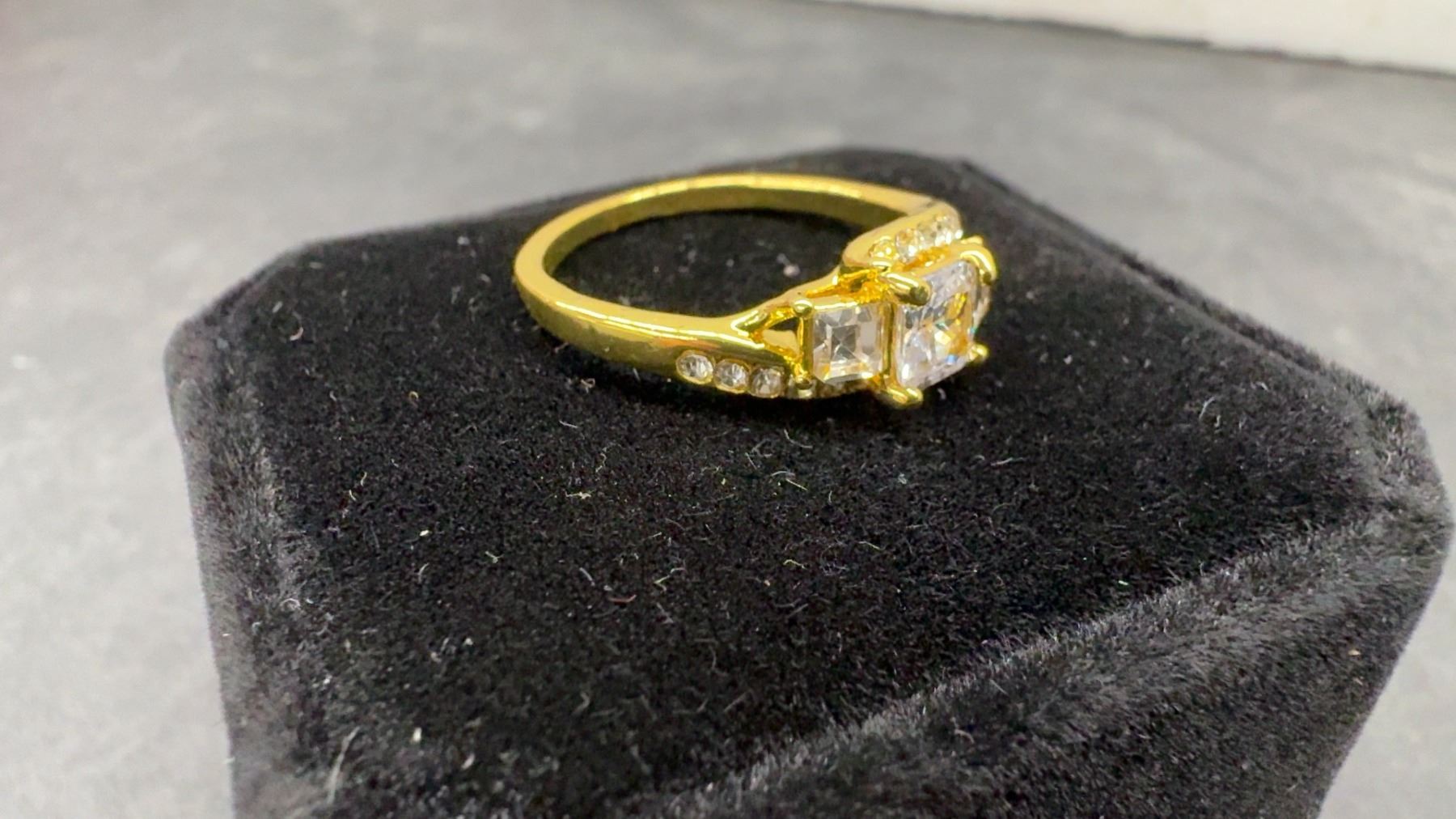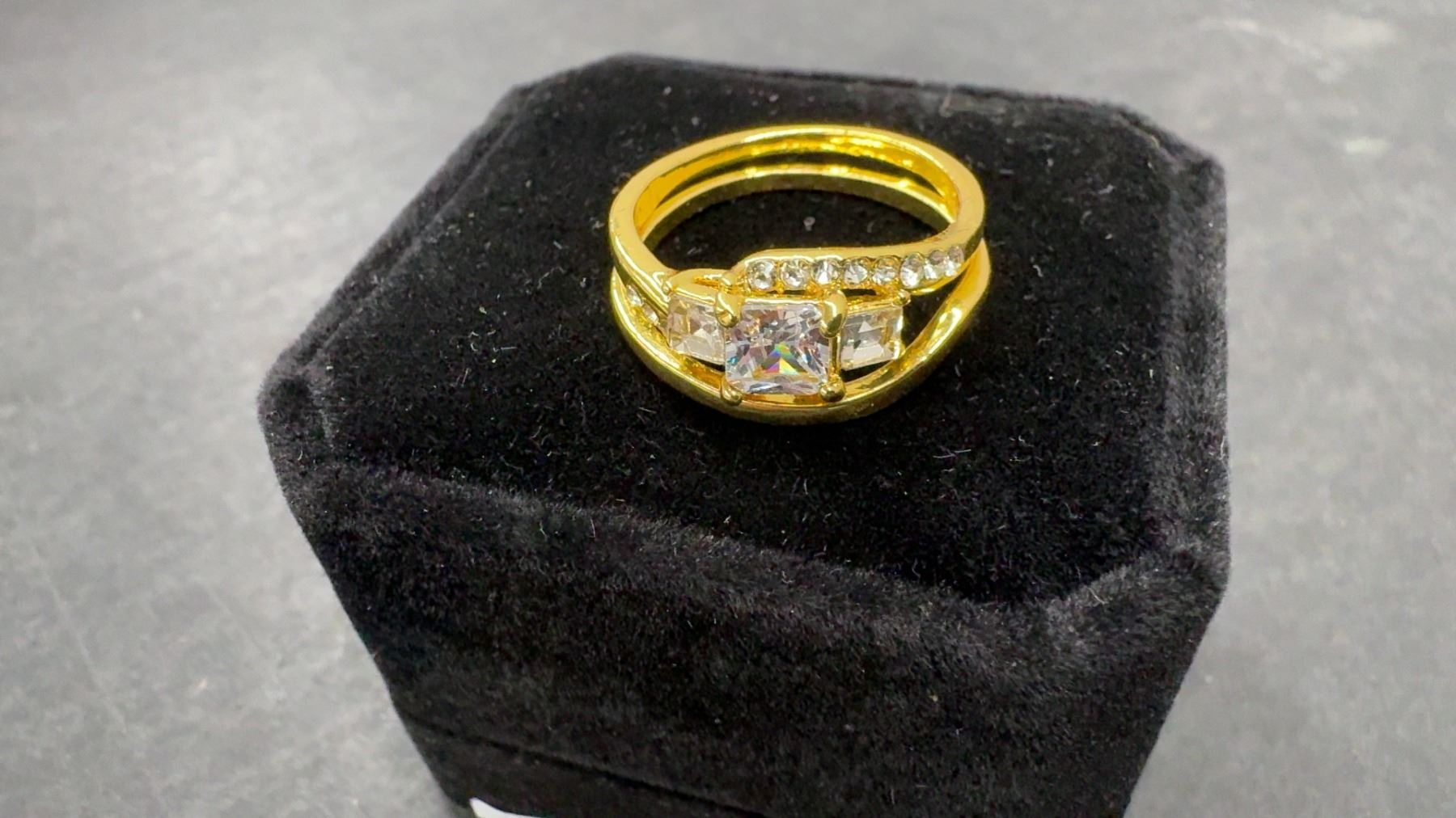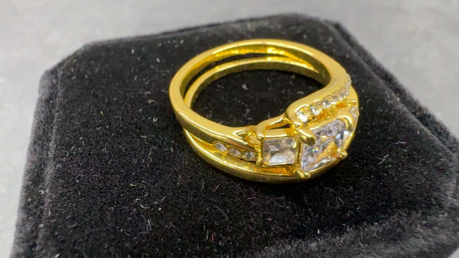 New 14K Gold Plated 1.0ct Princess Cut Simulated Diamond (CZ) Trinity Ring Set - Size 8.5