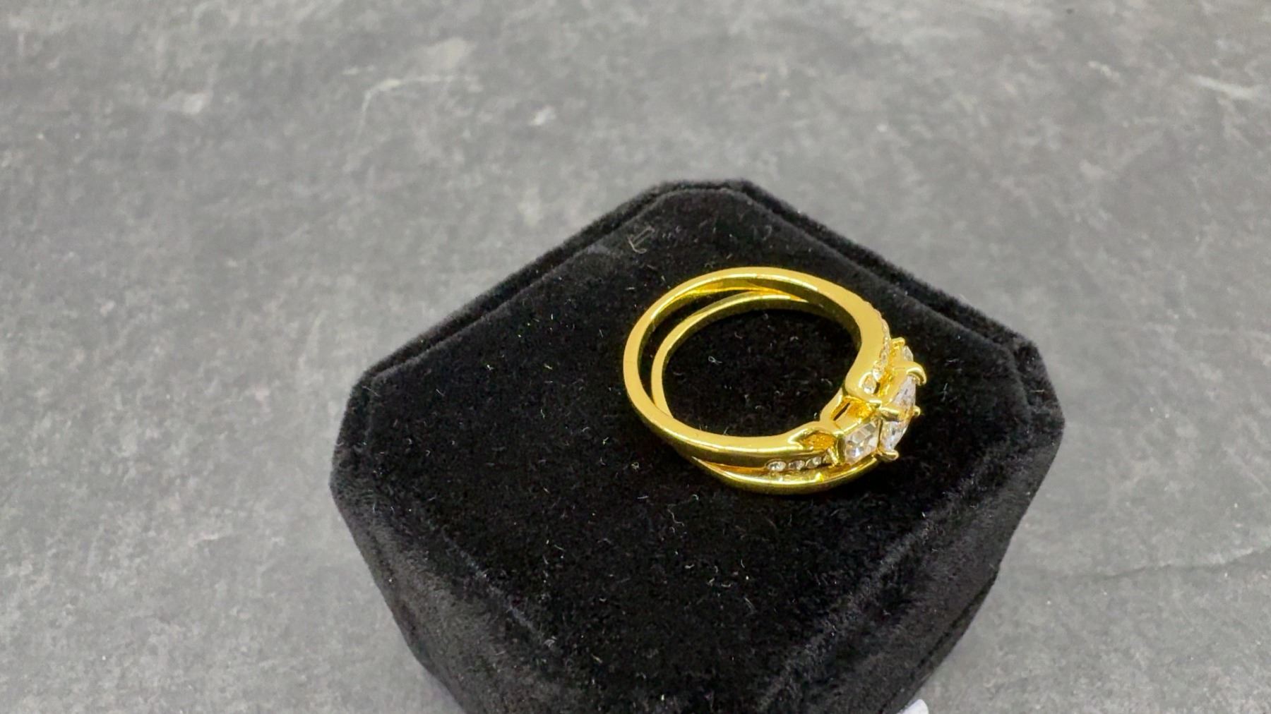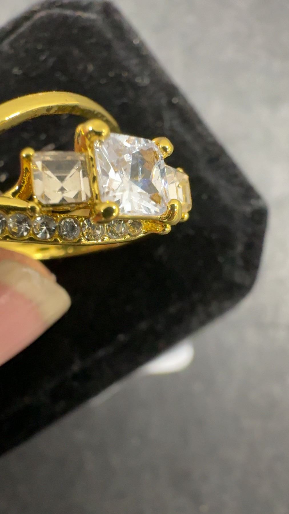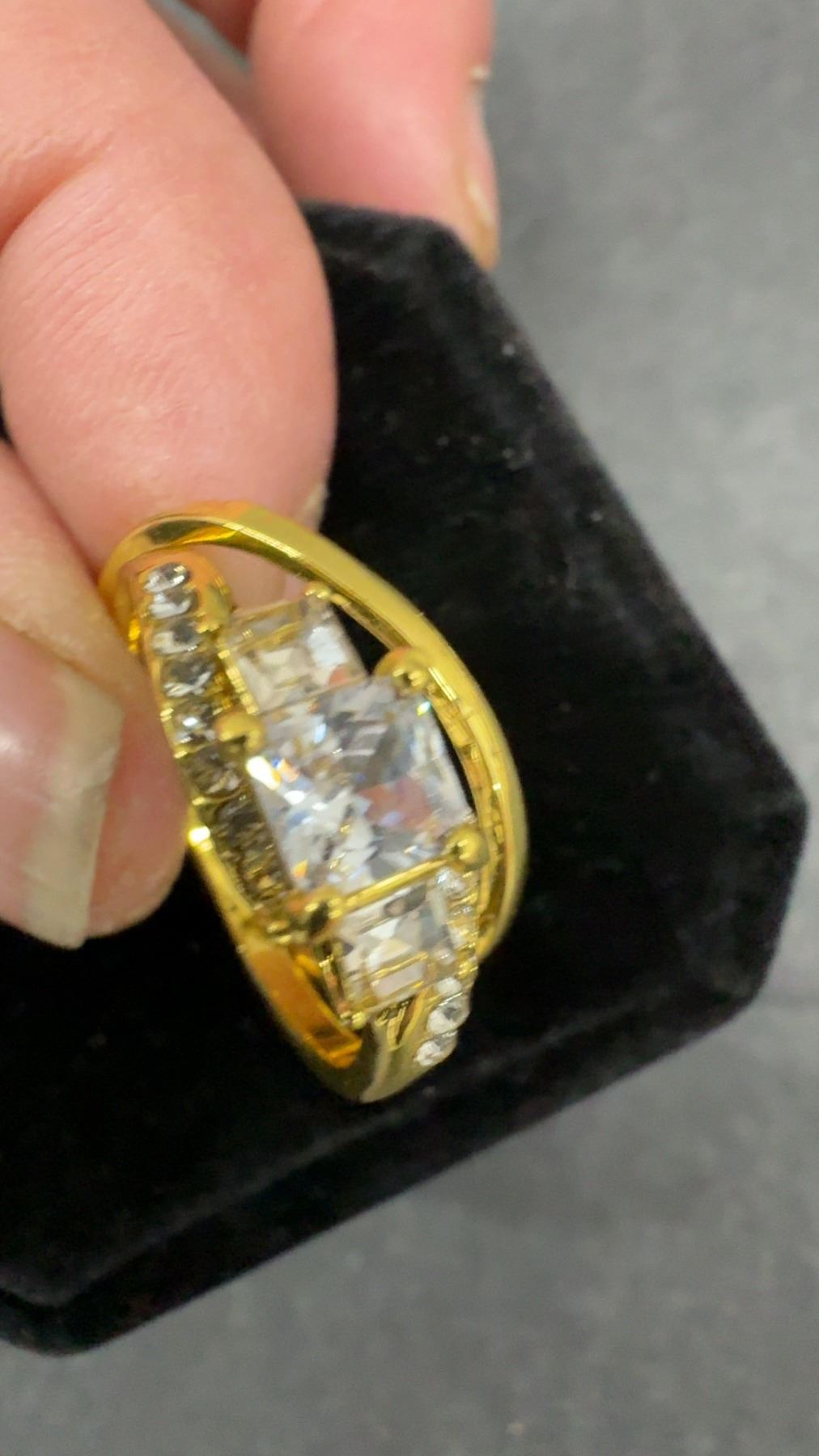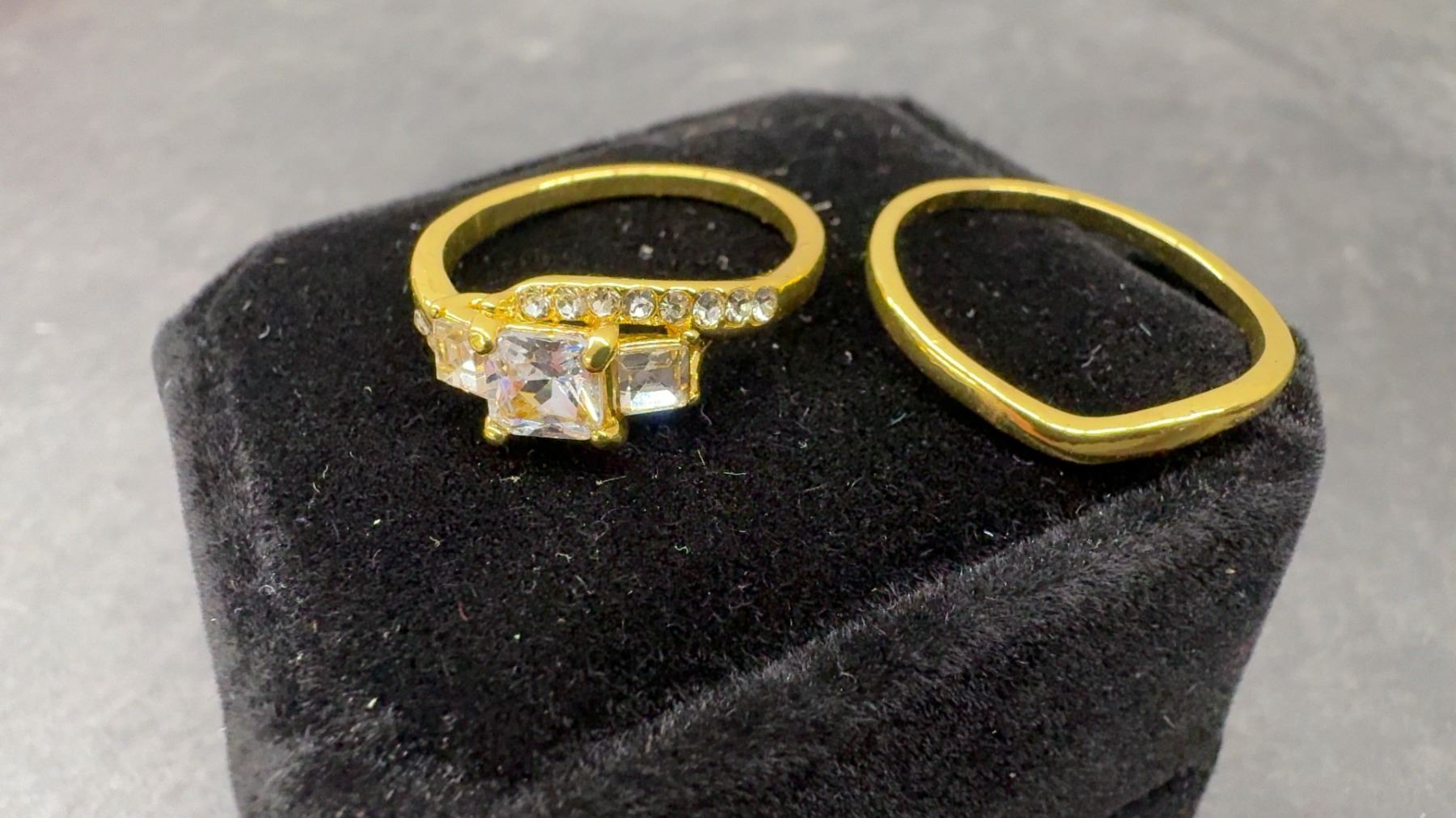 New 14K Gold Plated 1.0ct Princess Cut Simulated Diamond (CZ) Trinity Ring Set - Size 8.5