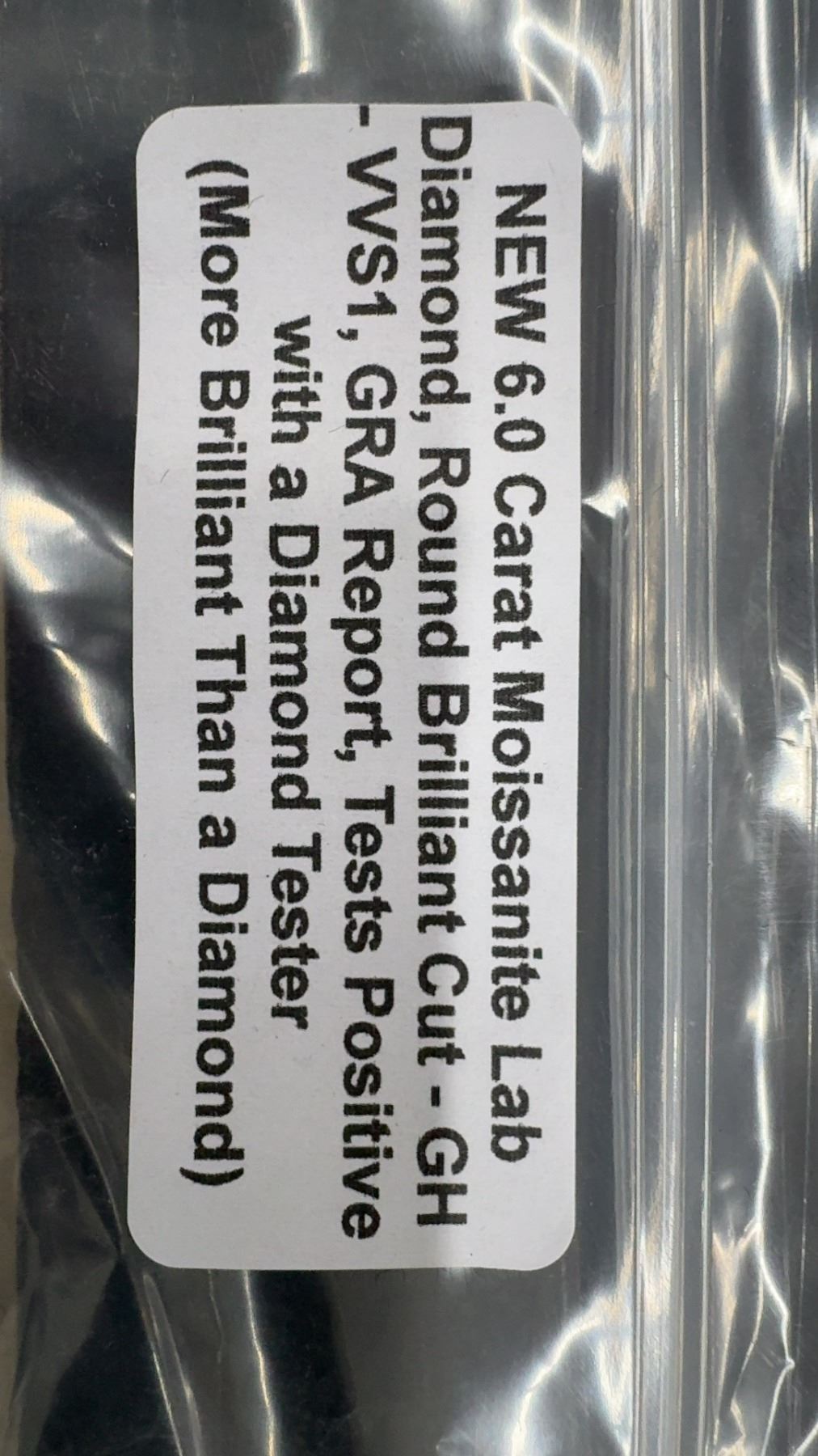 Lot 276B 6.0 Carat Moissanite Lab Diamond, Round Brilliant Cut, GH-VVS1, GRA Certified. Tests Positive with