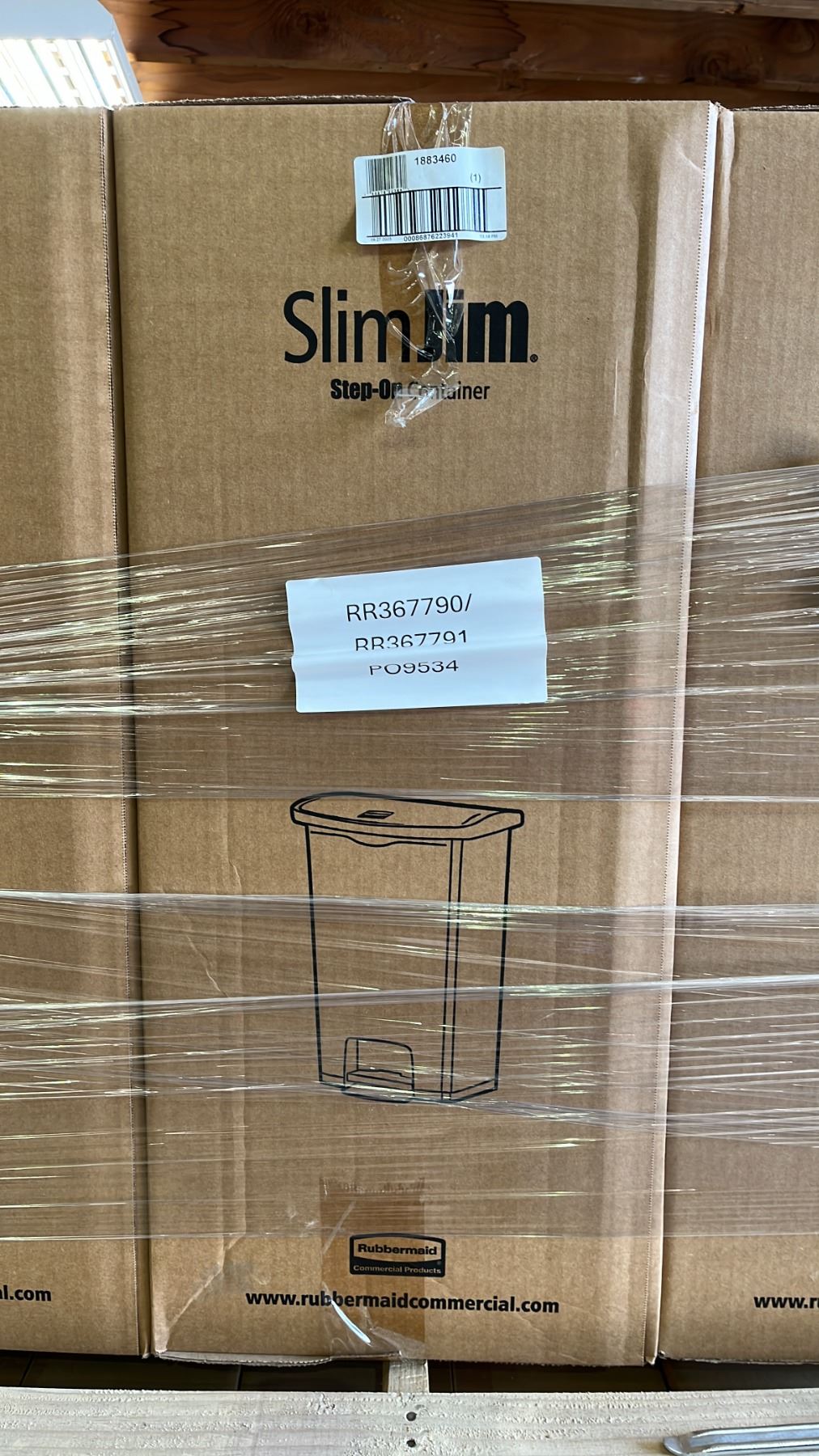 Lot 108 *NEW IN BOX* RUBBERMAID SLIM JIM 68L PLASTIC STEP-ON CONTAINER
