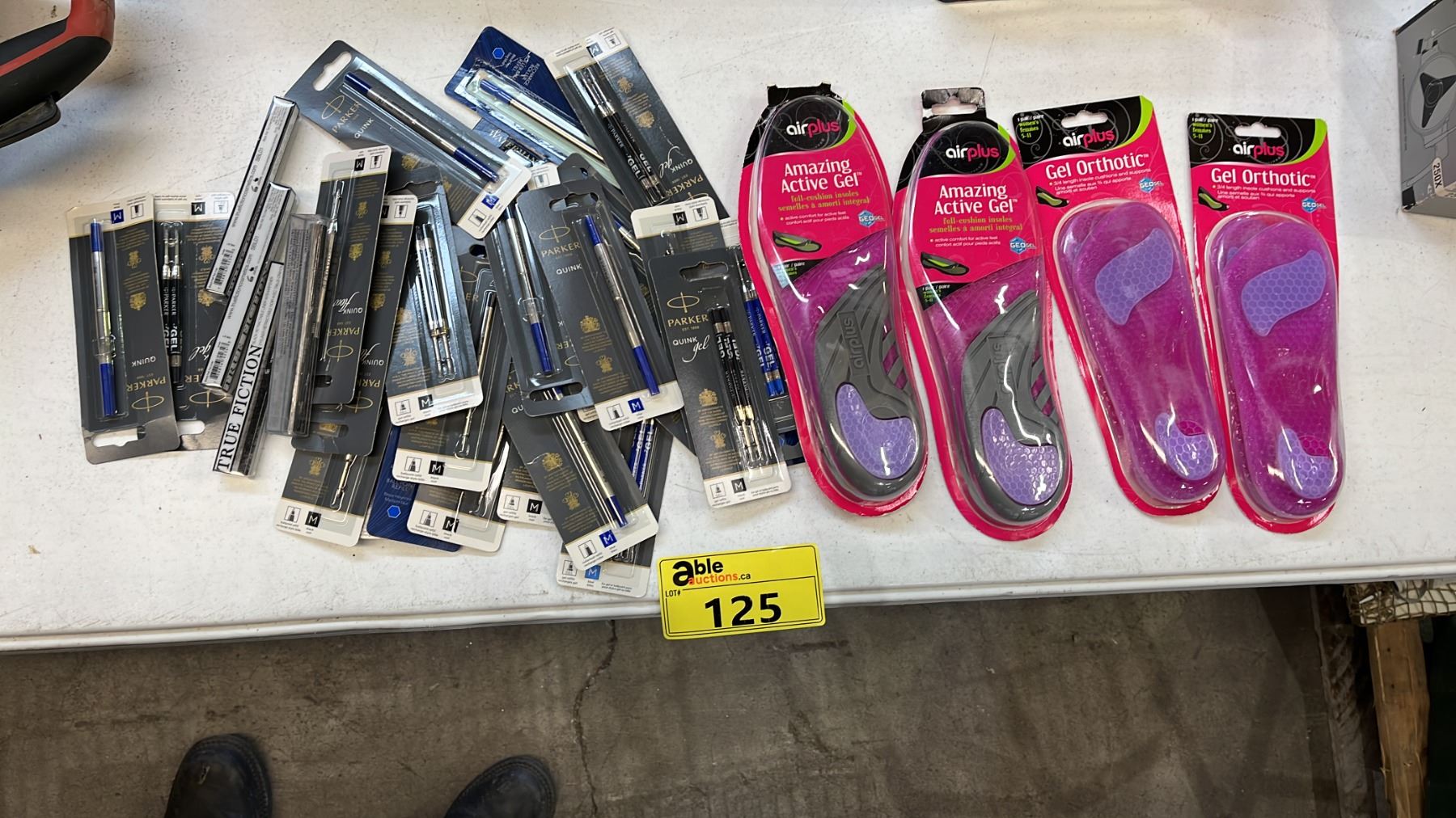 Lot 125 ASSORTED AIR PLUS GEL ORTHOTIC INSOLES & BALLPOINT/INK REPLACEMENTS