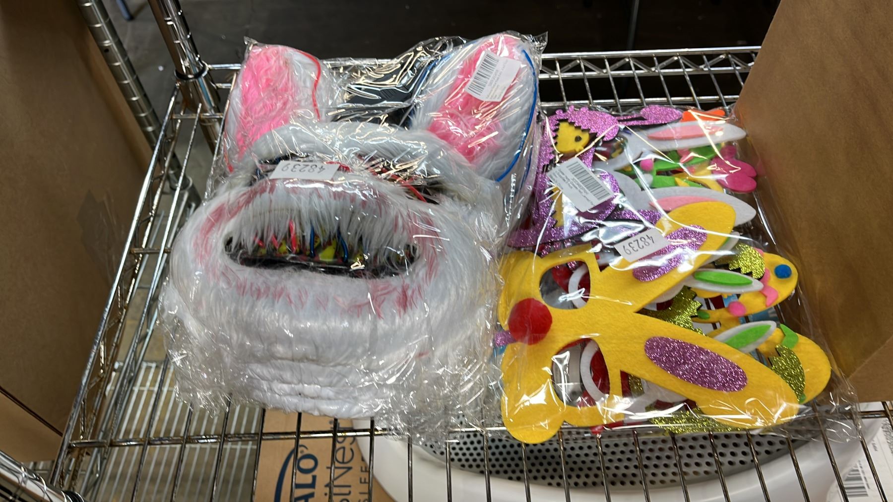 ASSORTED ITEMS INCLUDING; EASTER MASKS, RAXIAL SERIES ROOF FAN FOR INLINE DUCT & GILLETE INTIMATE PUBIC HAIR TRIMMER