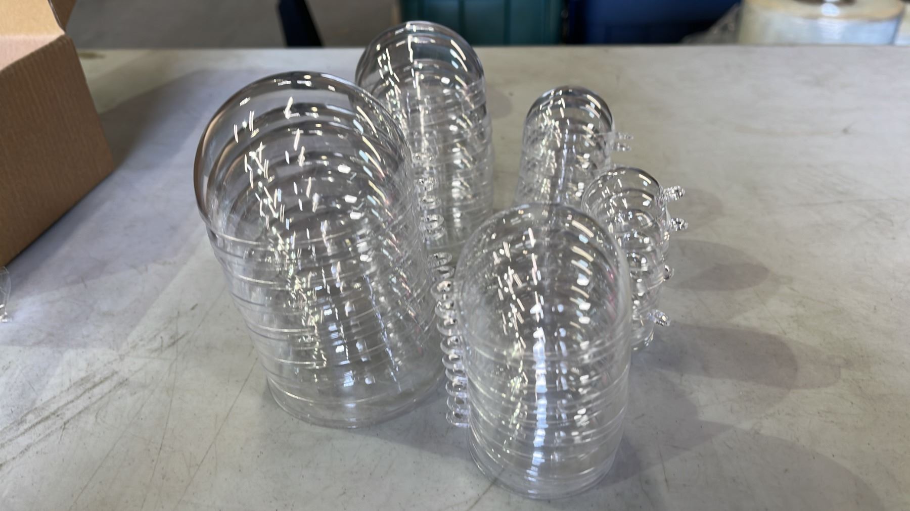 CASE OF CLEAR PLASTIC WEDDING DECOR