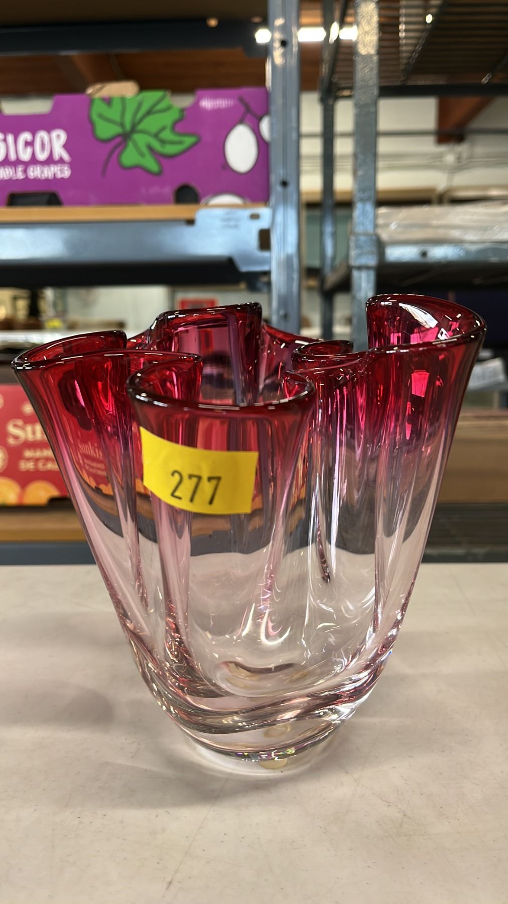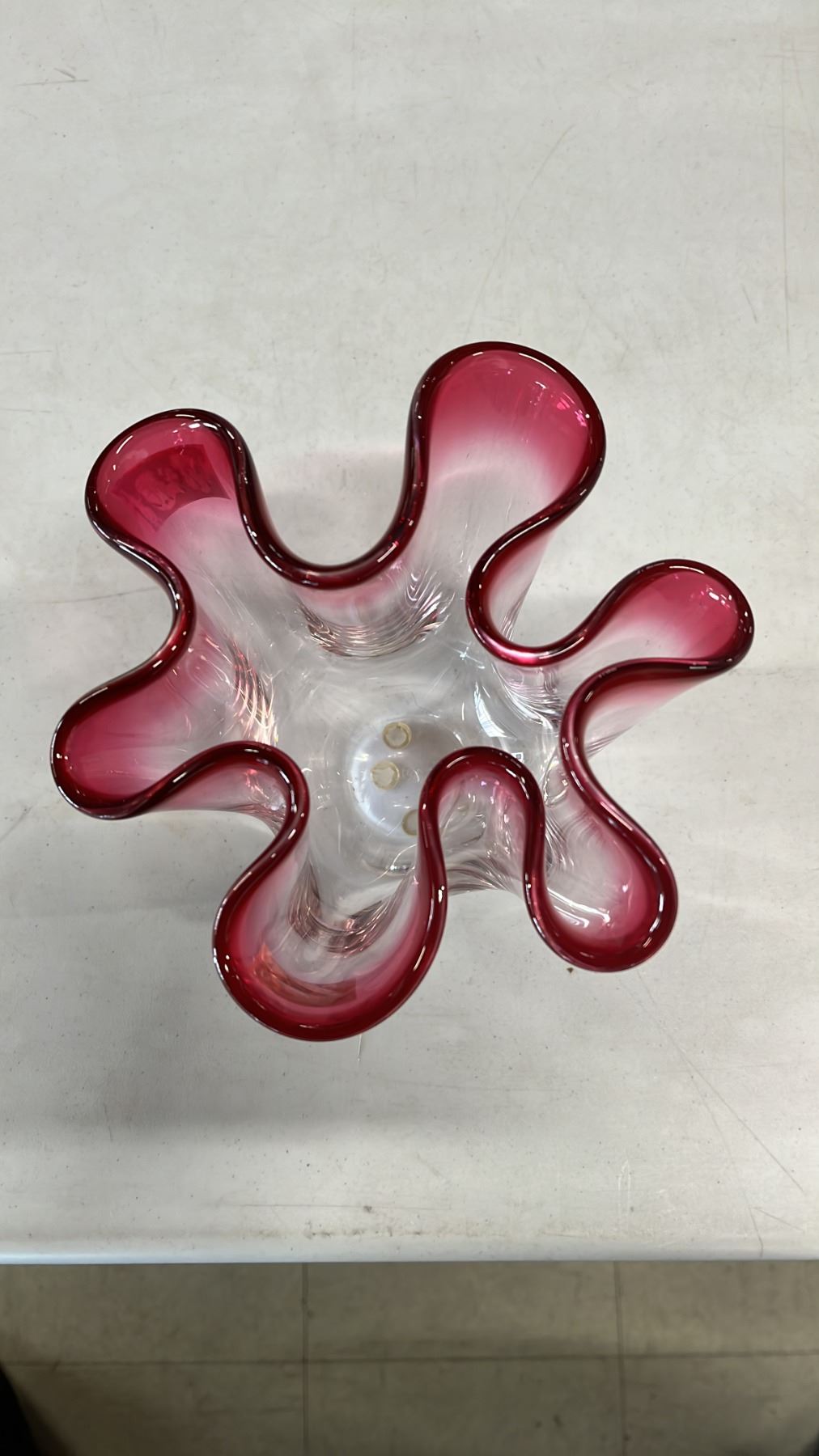 Lot 277 VINTAGE CHALET GLASS PINK TO CLEAR HANDKERCHIEF VASE