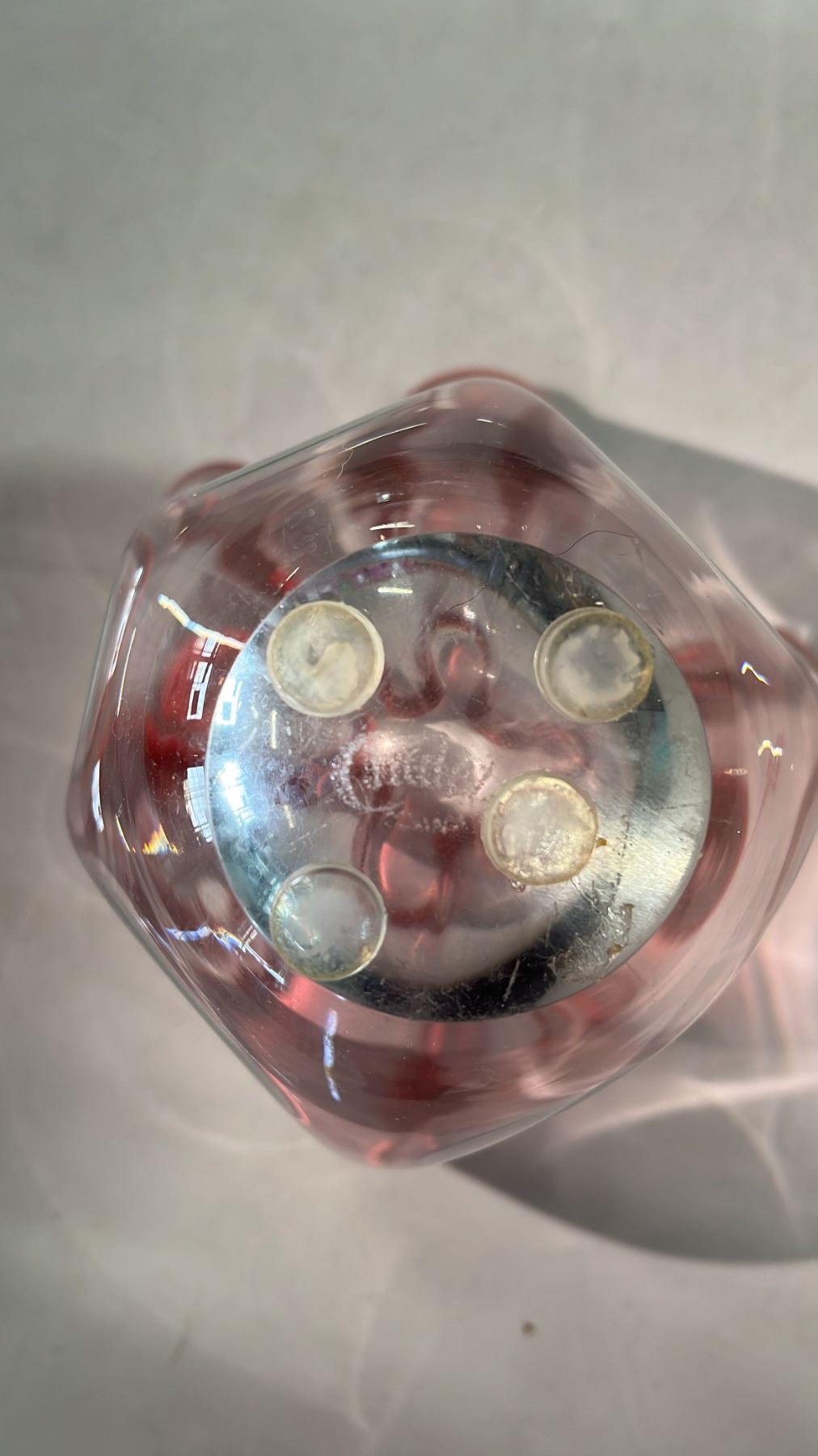 VINTAGE CHALET GLASS PINK TO CLEAR HANDKERCHIEF VASE