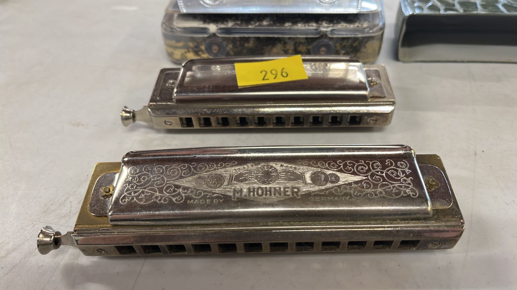 Lot 296 HONHER SLIDE HARP IN KEY C & HOHNER SUPER SUPER CHOMONICA CHROMATIC HARP IN KEY G
