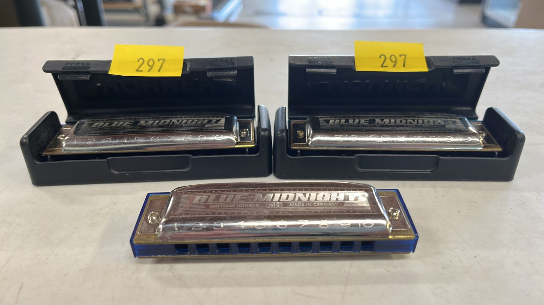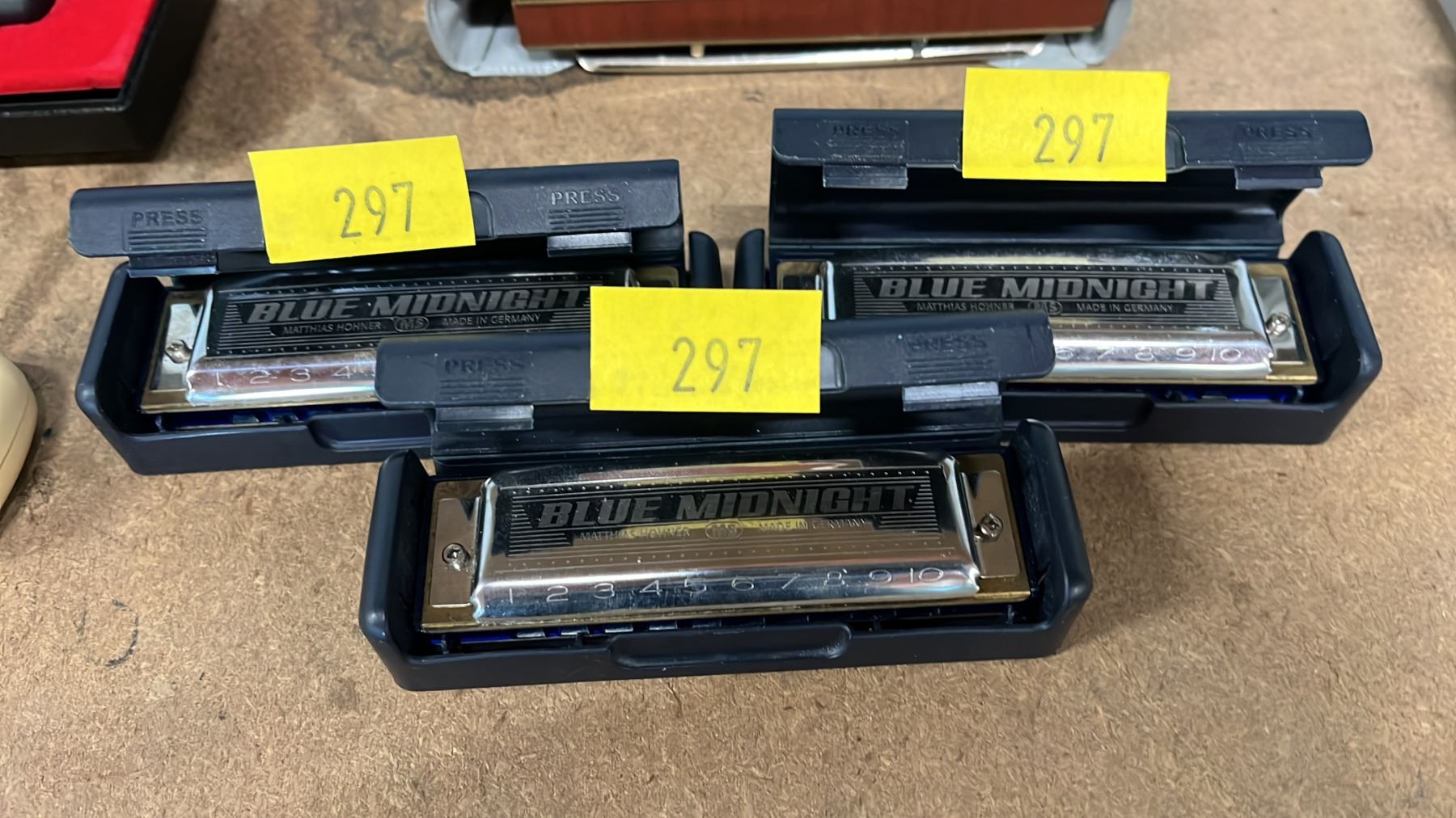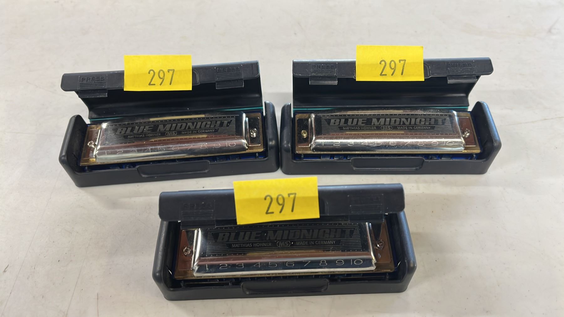 Lot 297 (3) HONHER BLUE MIDNIGHT HARPS IN CASES: KEYS A, E & GF