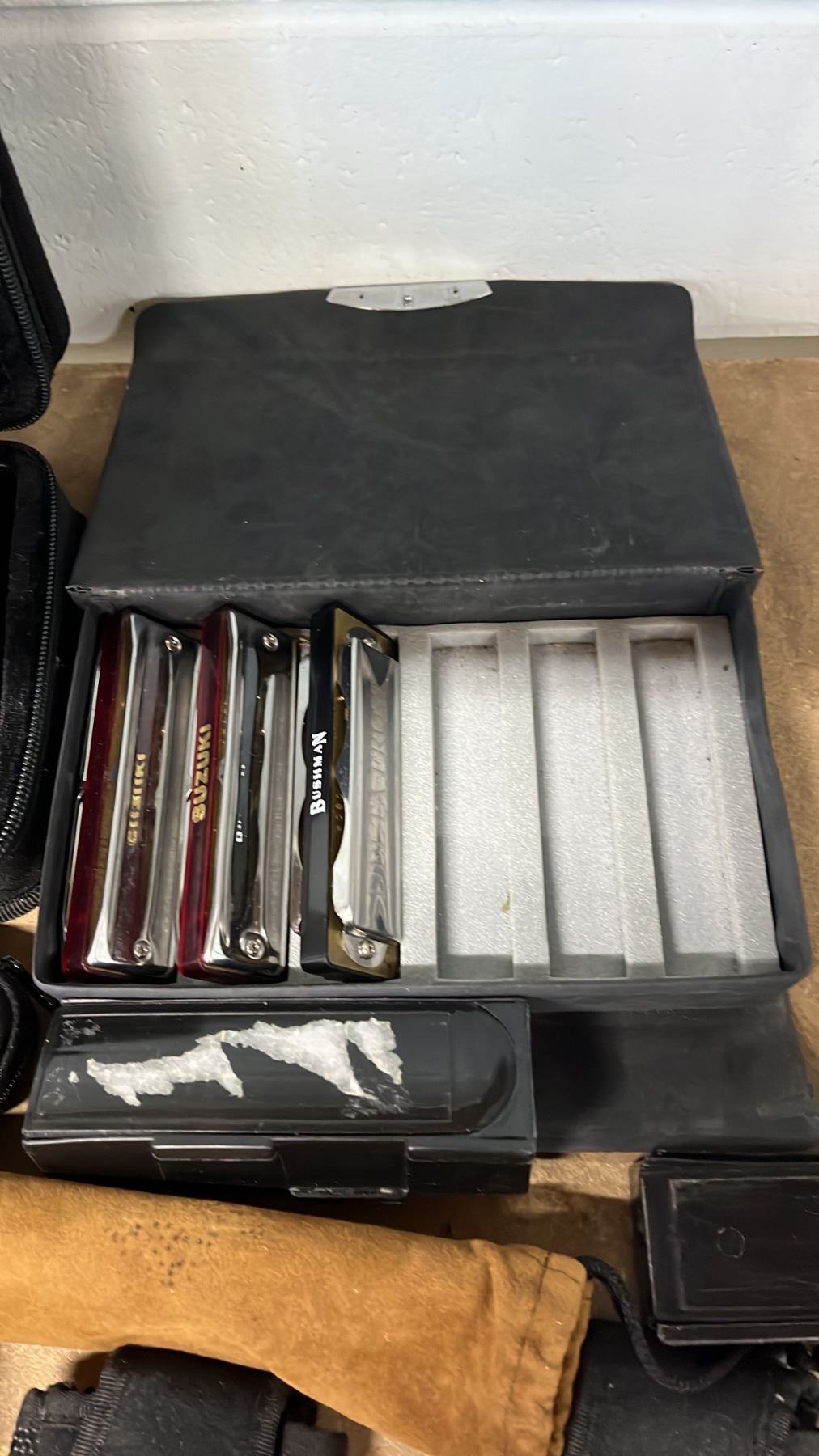 COLLECTION OF ASSORTED HARMONICAS & EMPTY HARMONICA CASES