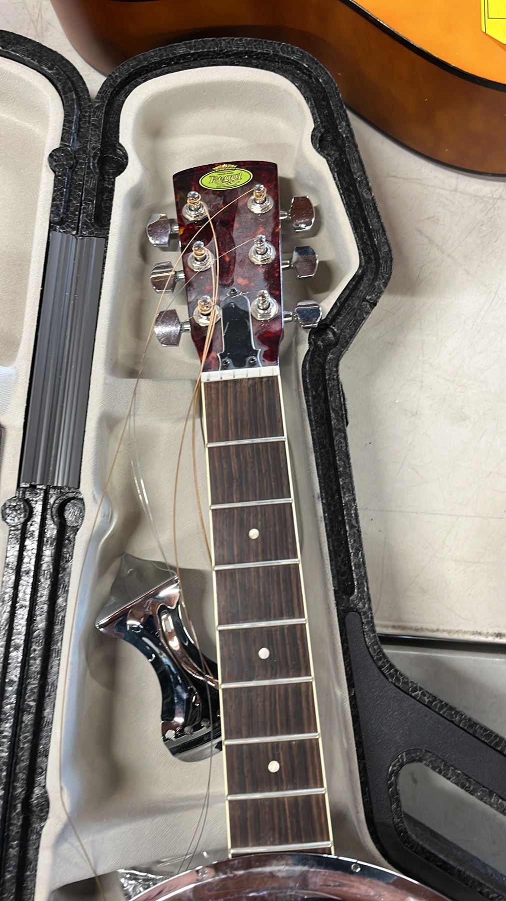REGAL DOBRO GUITAR IN CASE: COVER PLATE NEEDS TO BE ATTACHED, HAS STRINGS, BUT IS NOT STRUNG