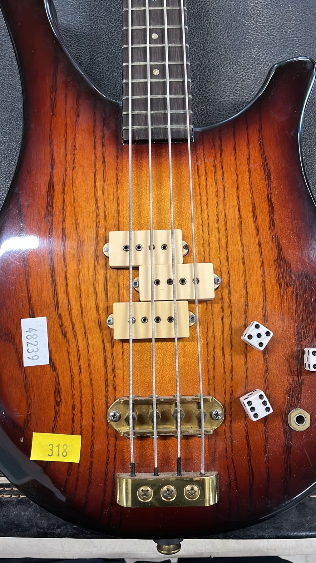 BASS GUITAR IN FENDER HARD CASE: *MISSING ELECTRONICS CAVITY COVER*