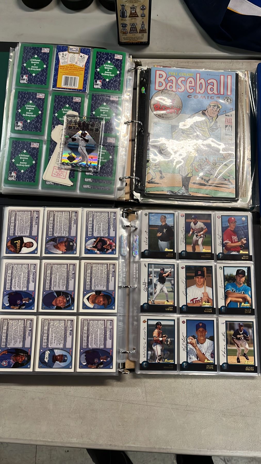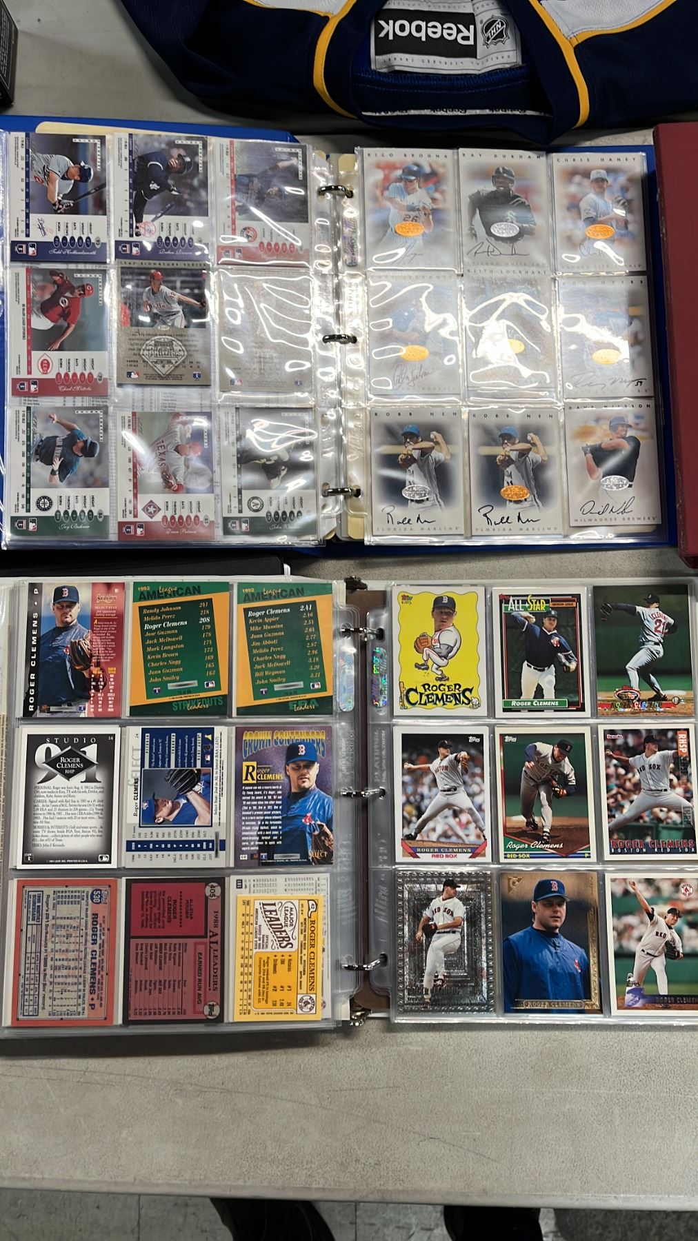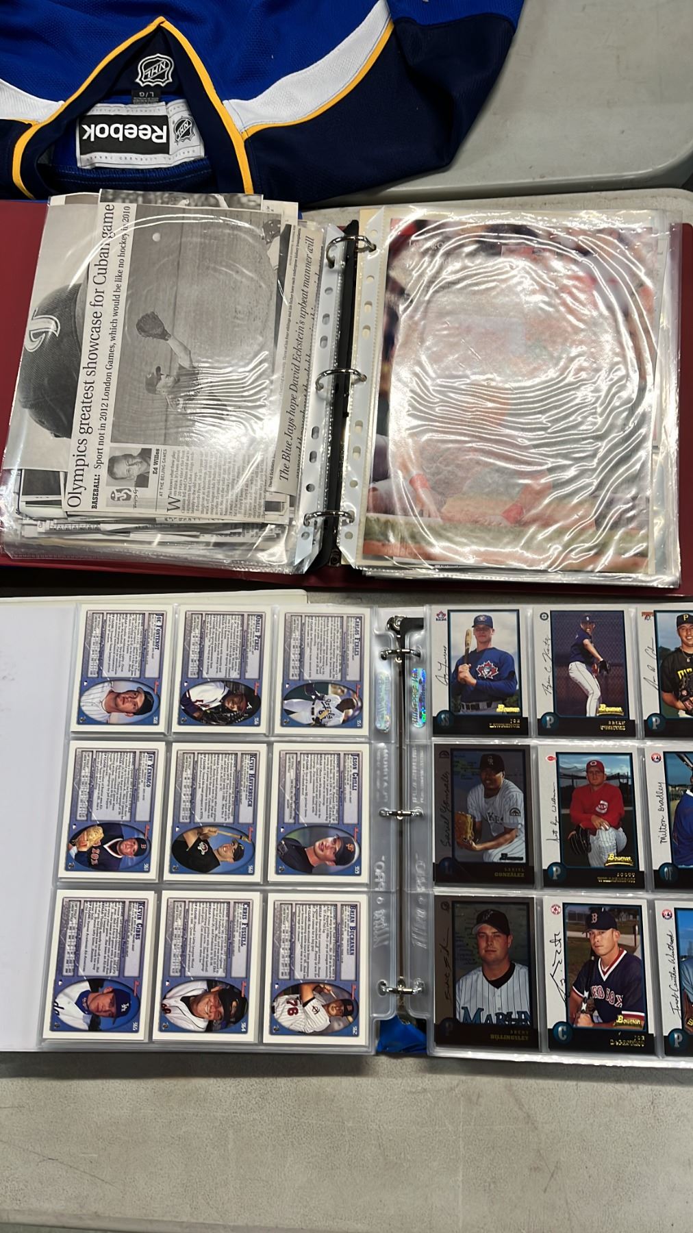 TABLE OF ASSORTED SPORTS TRADING CARDS & NEWSPAPER ARTICLES
