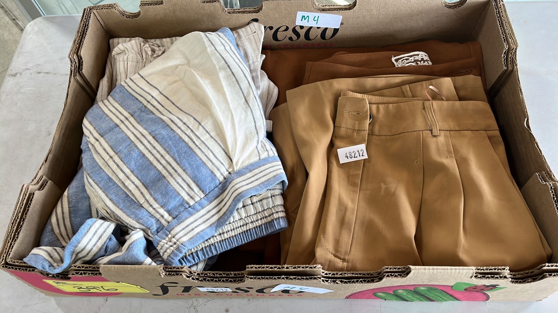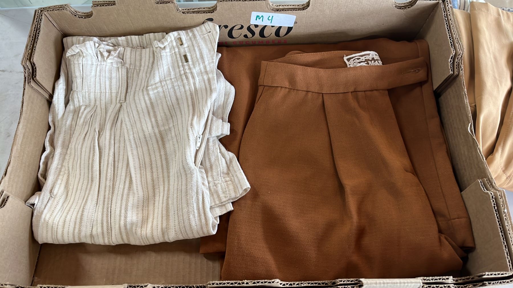 4 PAIRS LADIES CASUAL PANTS. BANANA REPUBLIC X 2, PINK MARTINI SIZE XS. UNKNOWN BRAND. SIZE M